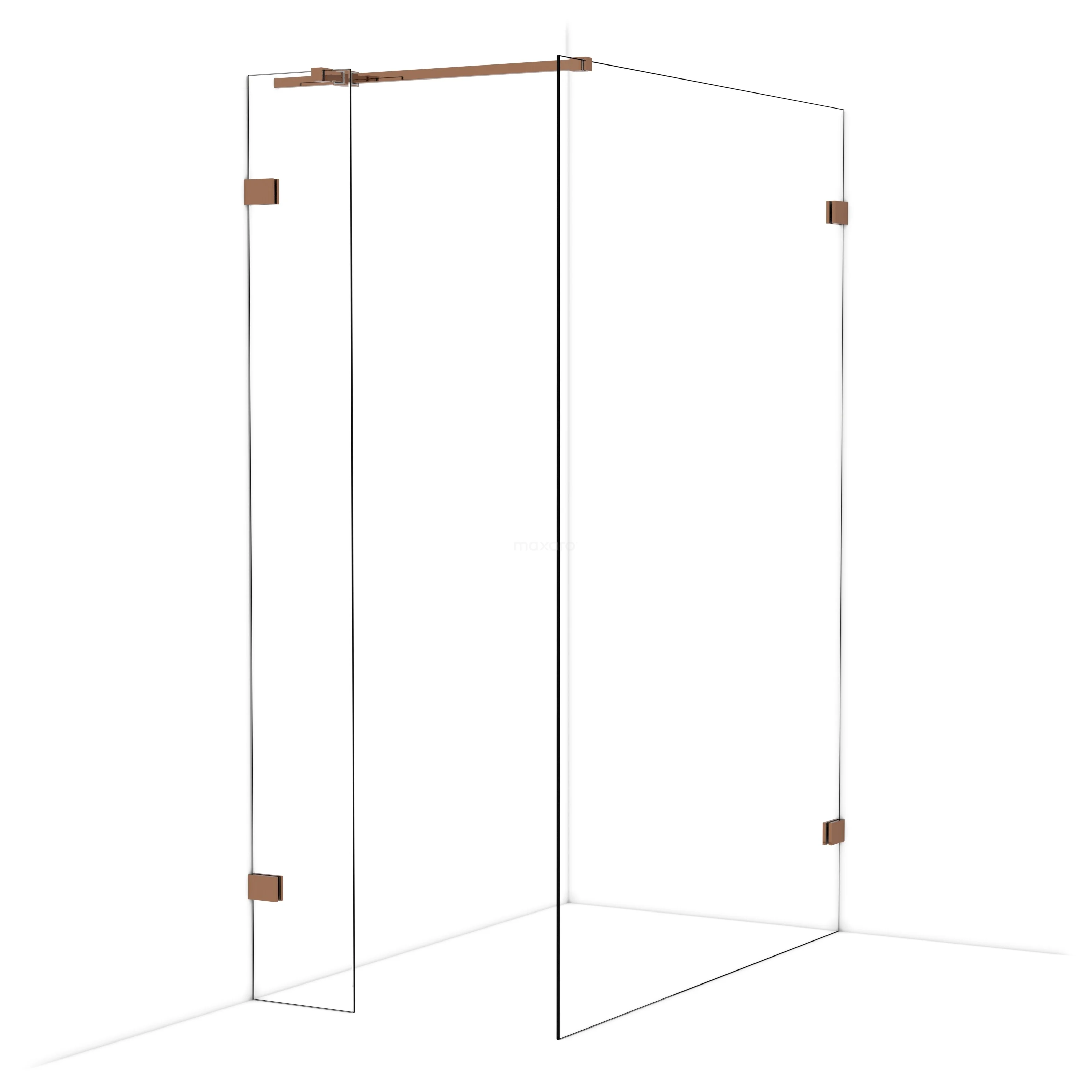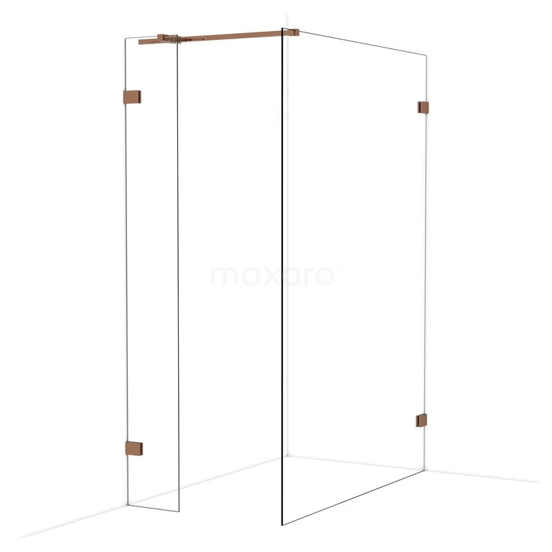 Diamond begehbare Dusche | 140x30 cm Glänzendes Kupfer 2 feste Wände