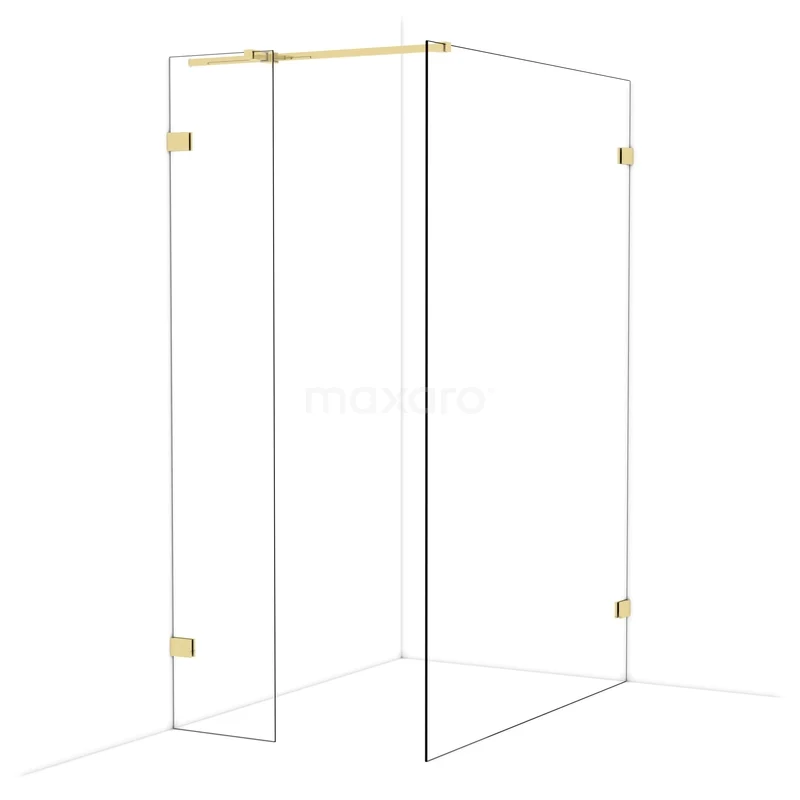 Diamond begehbare Dusche | 140x40 cm Glänzendes Hellgold 2 feste Wände