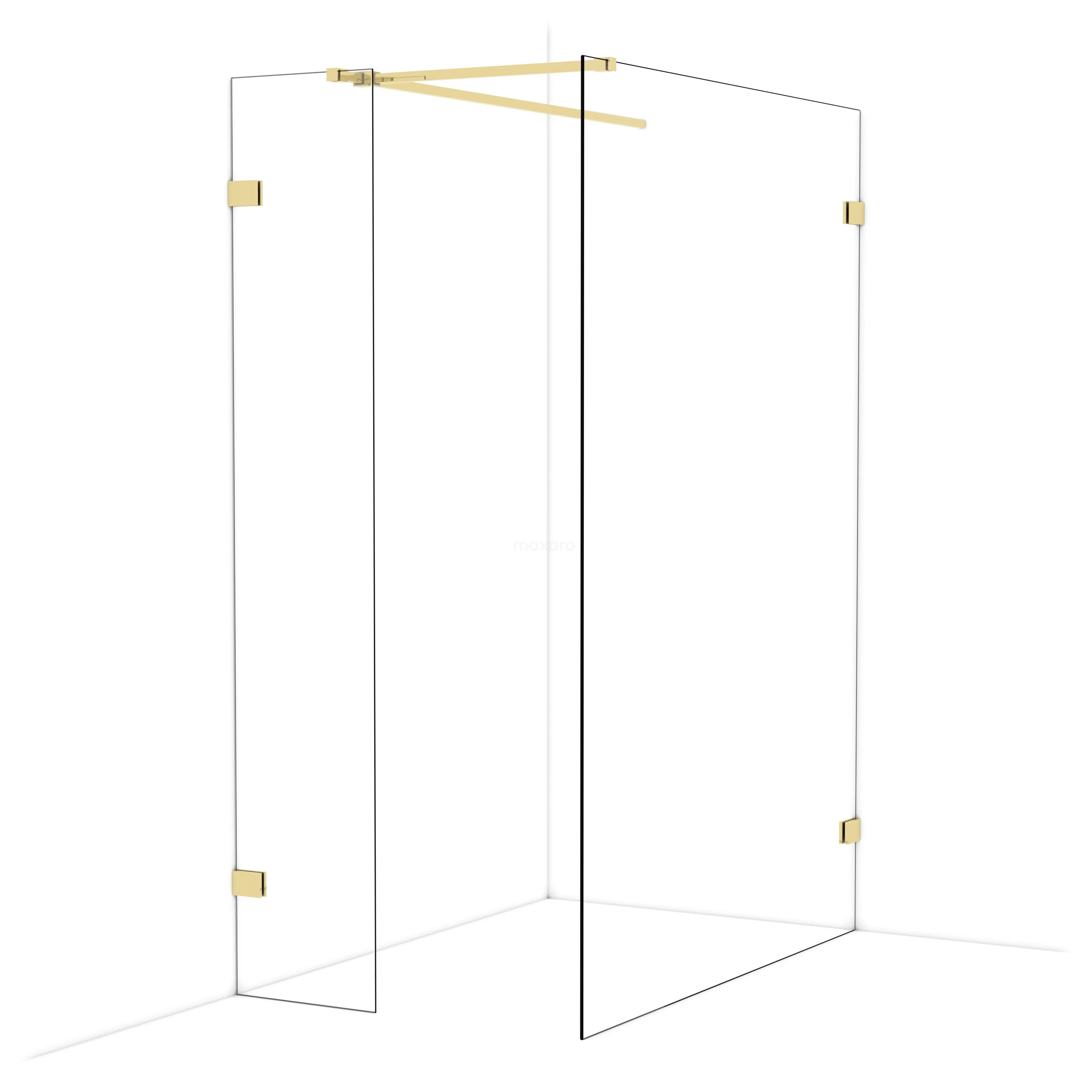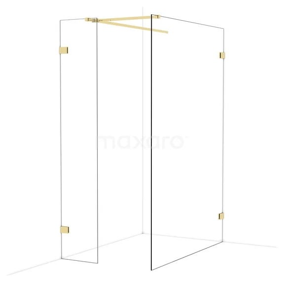 Diamond begehbare Dusche | 140x40 cm Glänzendes Hellgold 2 feste Wände