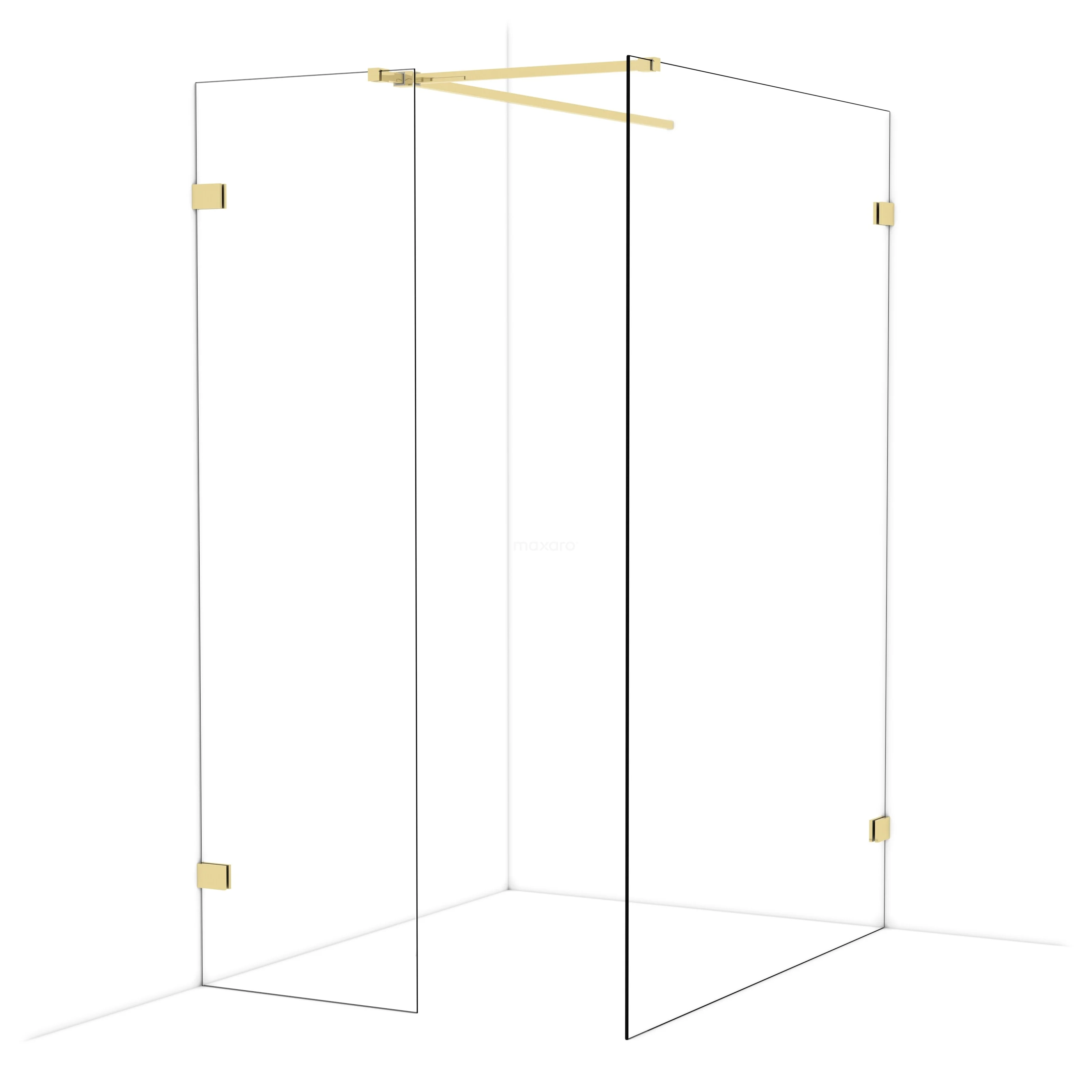 Diamond begehbare Dusche | 140x60 cm Glänzendes Hellgold 2 feste Wände