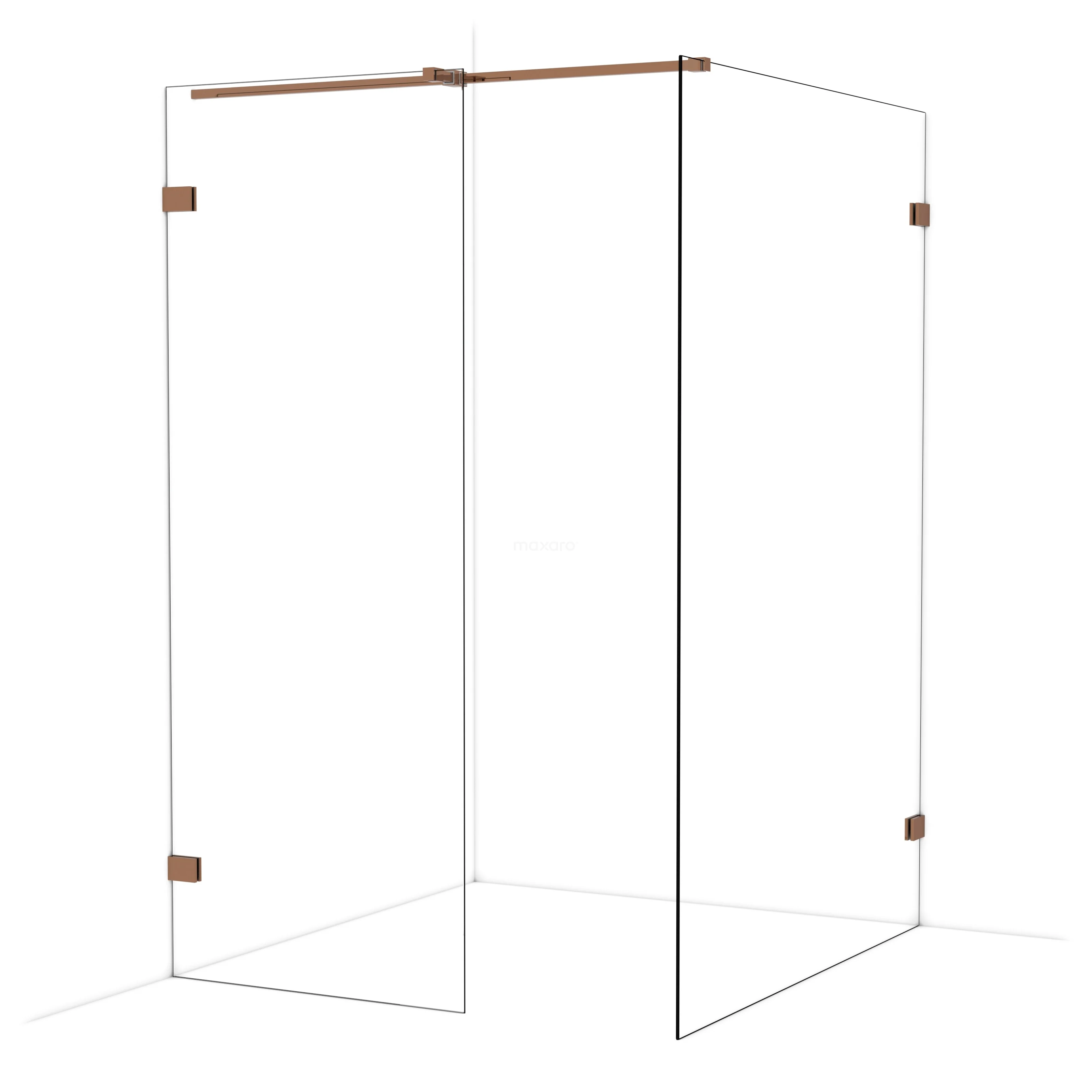 Diamond begehbare Dusche | 140x80 cm Glänzendes Kupfer 2 feste Wände