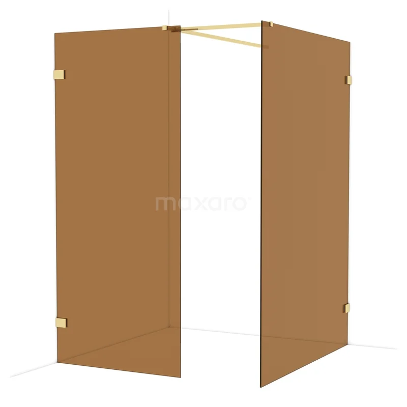 Diamond begehbare Dusche | 140x90 cm Glänzendes Hellgold 2 feste Wände