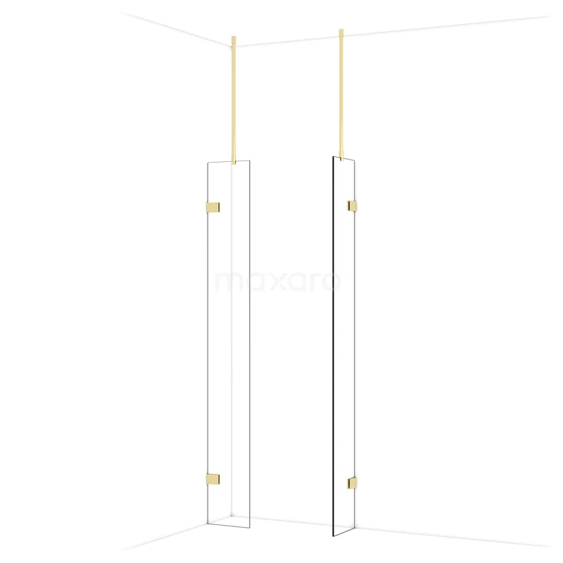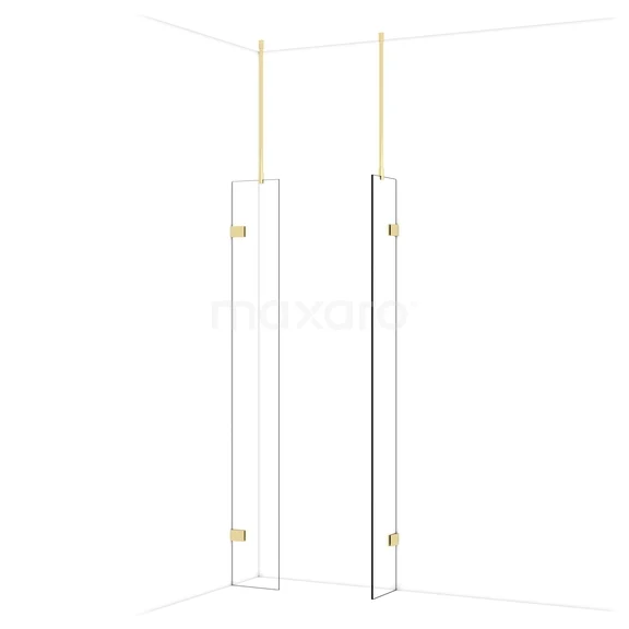 Diamond begehbare Dusche | 30x30 cm Glänzendes Hellgold 2 feste Wände