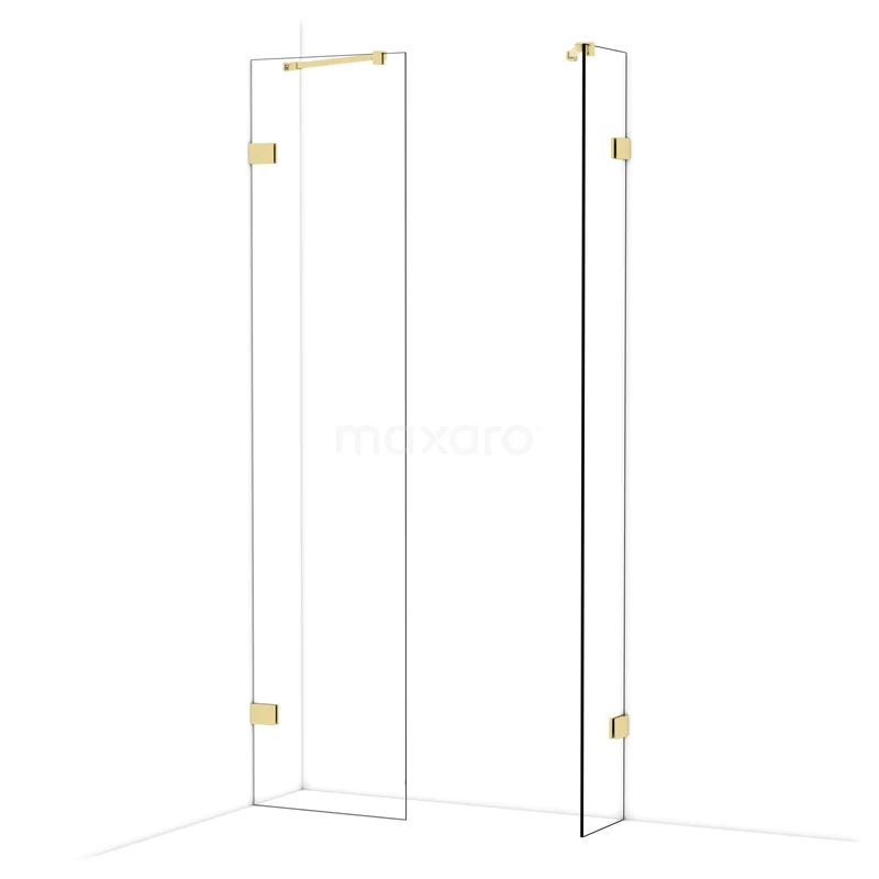 Diamond begehbare Dusche | 50x30 cm Glänzendes Hellgold 2 feste Wände