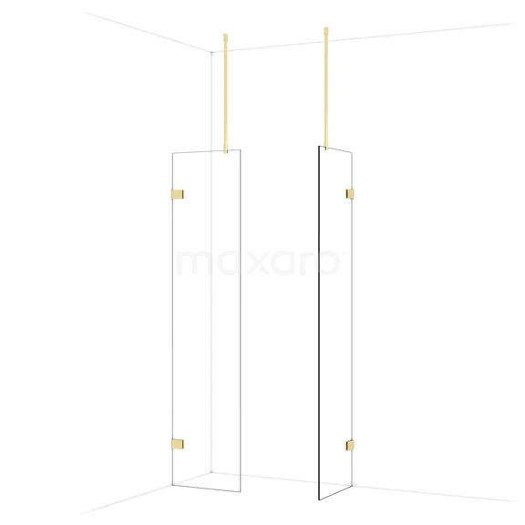 Diamond begehbare Dusche | 50x50 cm Glänzendes Hellgold 2 feste Wände