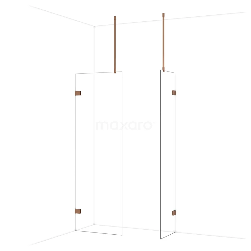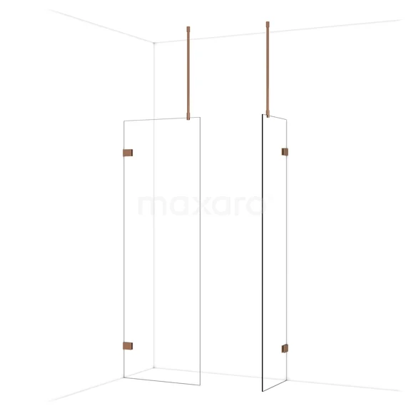 Diamond begehbare Dusche | 70x50 cm Glänzendes Kupfer 2 feste Wände