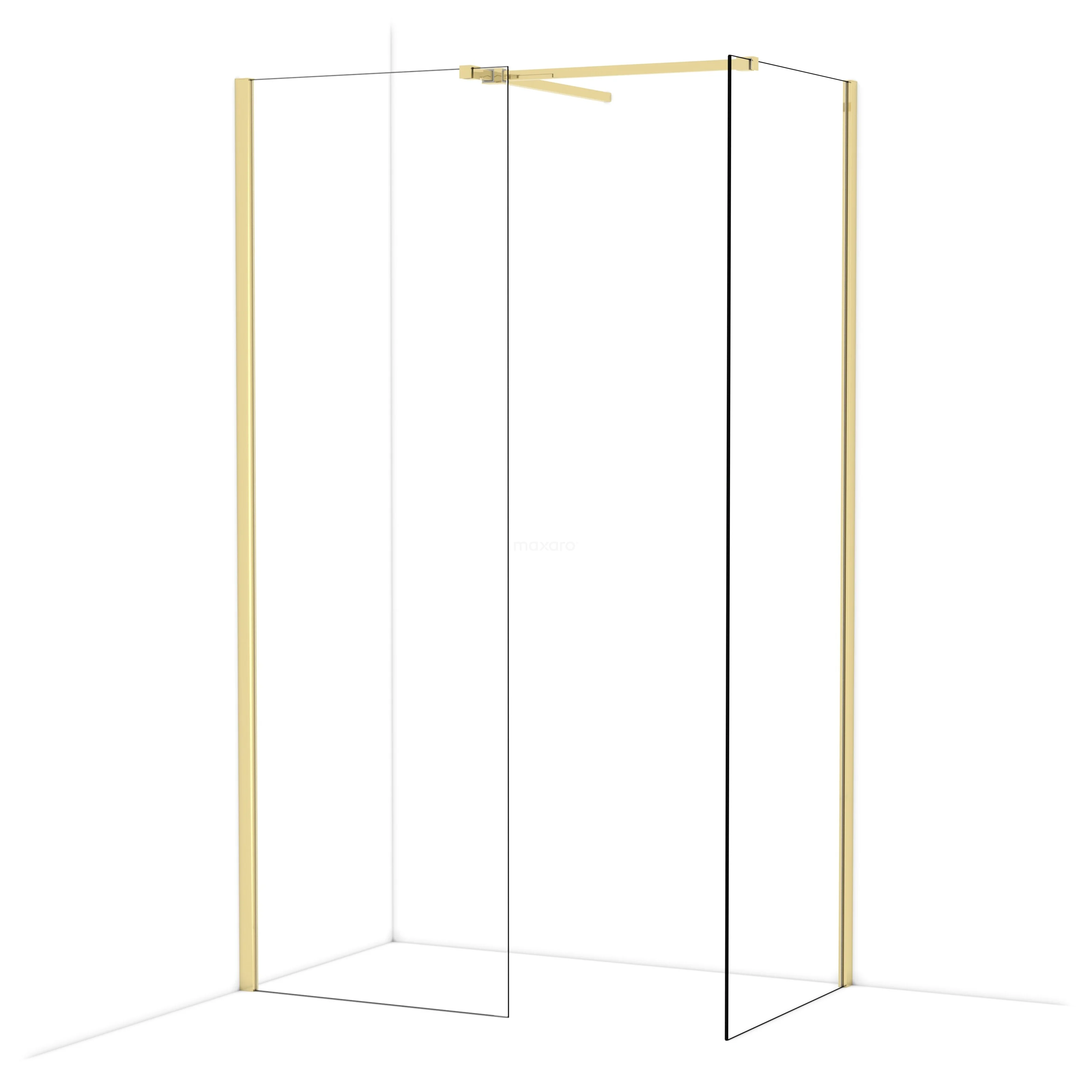 Diamond begehbare Dusche | 70x70 cm Glänzendes Hellgold 2 feste Wände