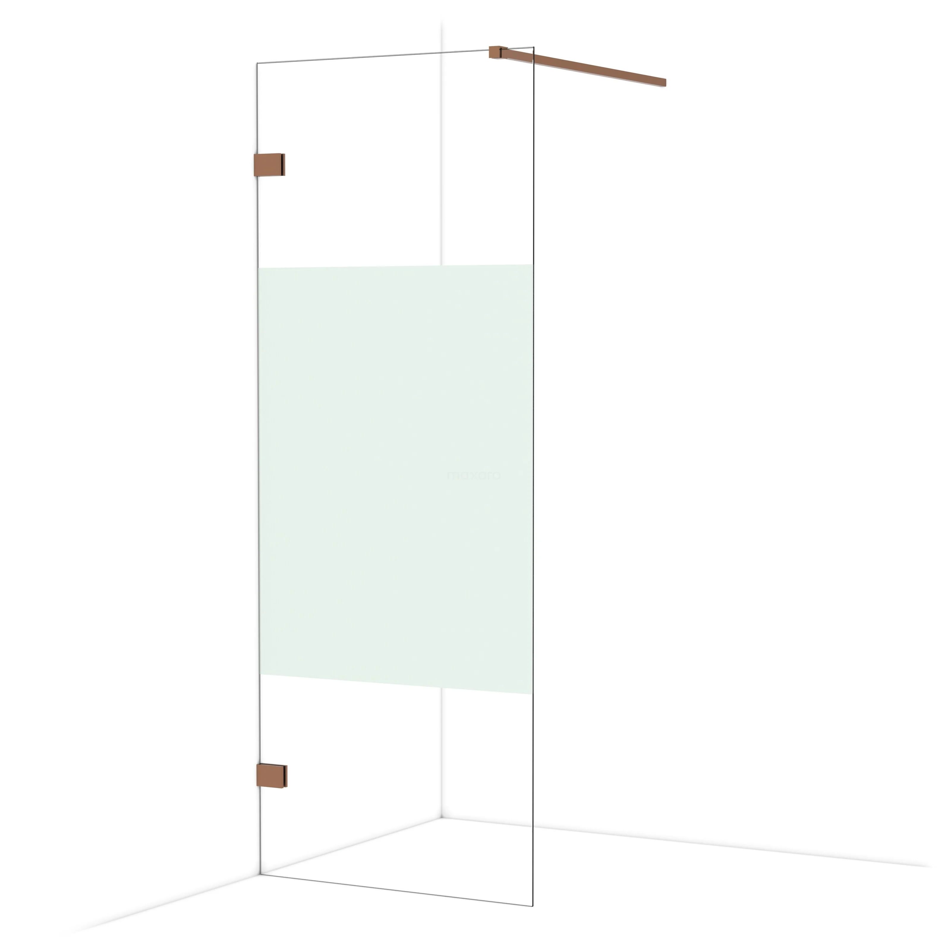 In der stilvollen begehbaren Dusche Diamond mit einer Größe von 80 cm genießen Sie jeden Tag herrliche Duschsitzungen. Sie hat ein auffälliges Design aus glänzendem Kupfer und verfügt über Klarglas mit mattem Streifen für mehr Privatsphäre.