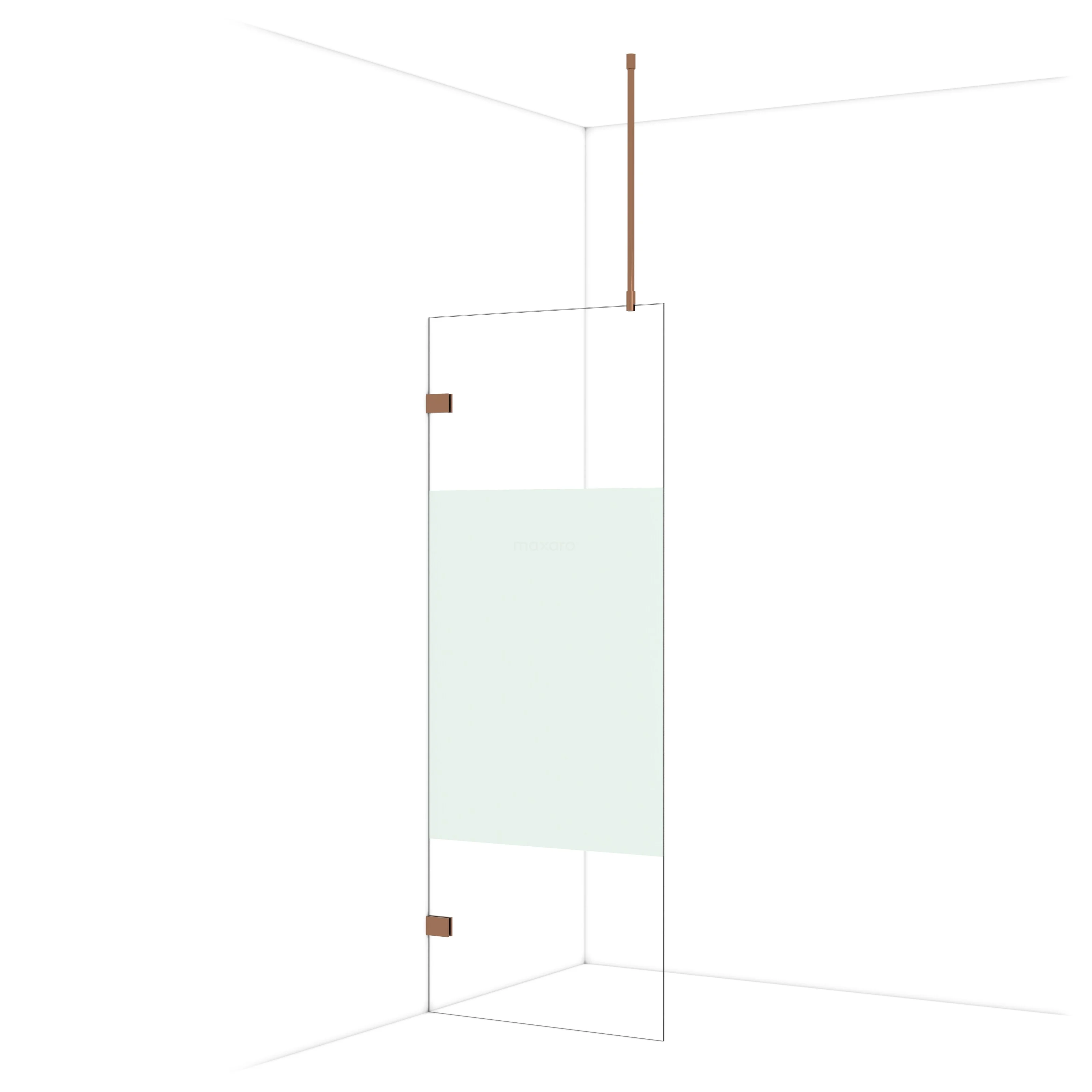 In der stilvollen begehbaren Dusche Diamond mit einer Größe von 80 cm genießen Sie jeden Tag herrliche Duschsitzungen. Sie hat ein auffälliges Design aus glänzendem Kupfer und verfügt über Klarglas mit mattem Streifen für mehr Privatsphäre.