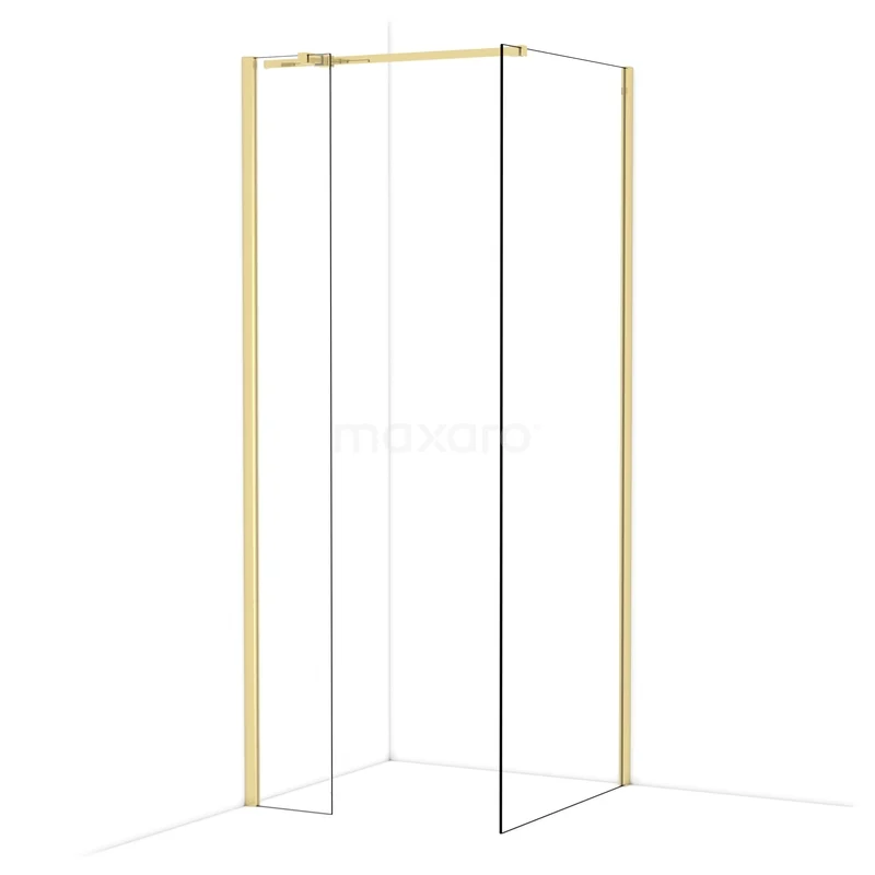 Diamond begehbare Dusche | 80x30 cm Glänzendes Hellgold 2 feste Wände