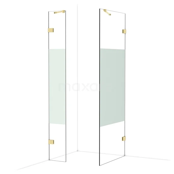 In der stilvollen begehbaren Dusche Diamond mit den Maßen 80x30 cm können Sie jeden Tag herrliche Duschsitzungen genießen. Sie hat ein raffiniertes und luxuriöses Design in glänzendem Hellgold und verfügt über Klarglas mit mattem Streifen für mehr Privatsphäre.