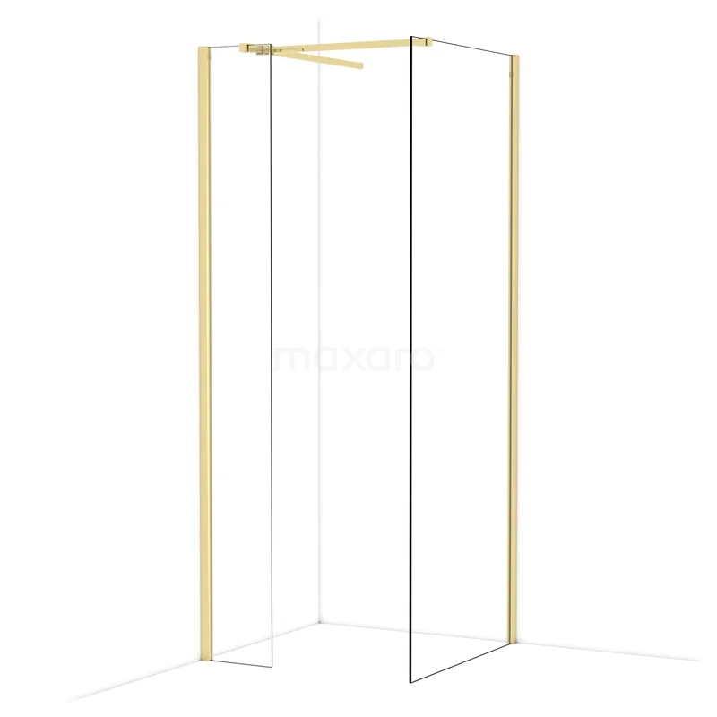 Diamond begehbare Dusche | 80x30 cm Glänzendes Hellgold 2 feste Wände