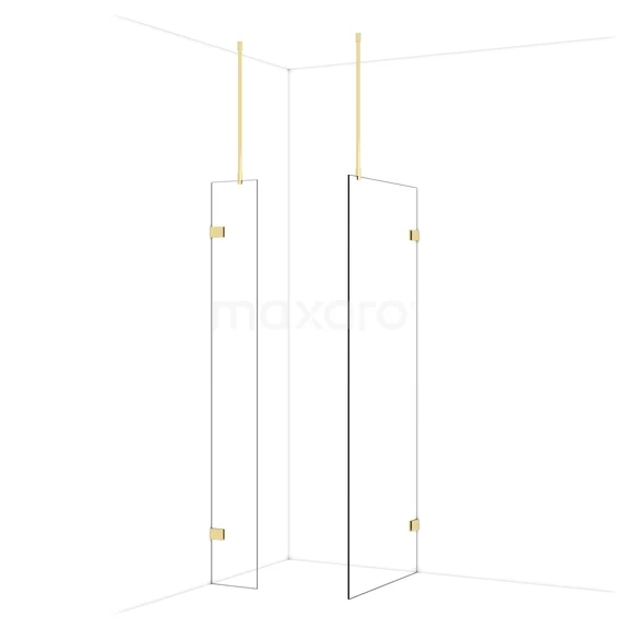 Diamond begehbare Dusche | 80x30 cm Glänzendes Hellgold 2 feste Wände