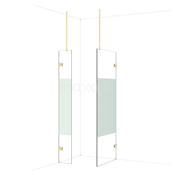 In der stilvollen begehbaren Dusche Diamond mit den Maßen 80x30 cm können Sie jeden Tag herrliche Duschsitzungen genießen. Sie hat ein raffiniertes und luxuriöses Design in glänzendem Hellgold und verfügt über Klarglas mit mattem Streifen für mehr Privatsphäre.