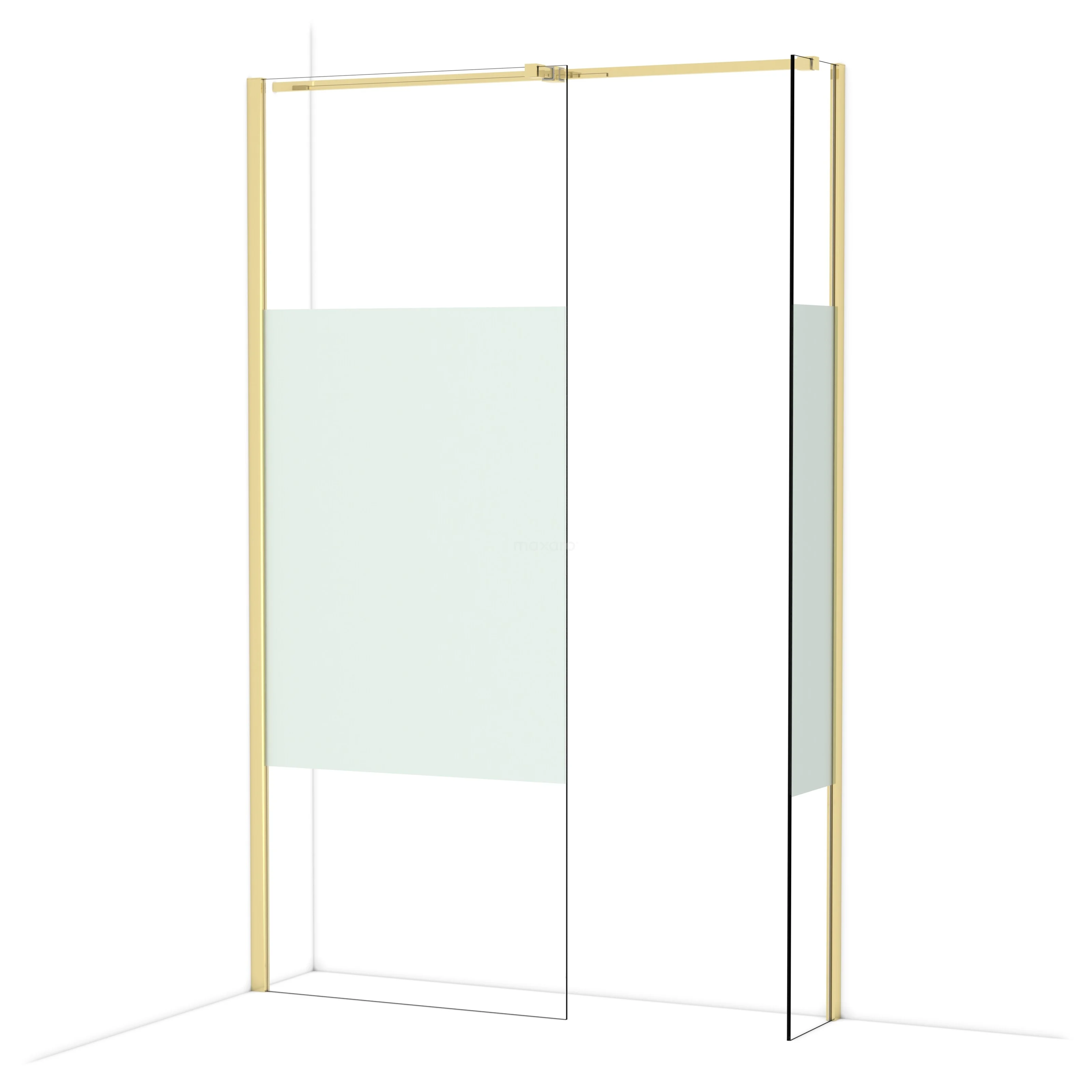 In der stilvollen begehbaren Dusche Diamond mit den Maßen 80x30 cm können Sie jeden Tag herrliche Duschsitzungen genießen. Sie hat ein raffiniertes und luxuriöses Design in glänzendem Hellgold und verfügt über Klarglas mit mattem Streifen für mehr Privatsphäre.