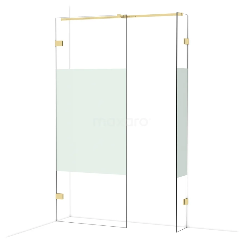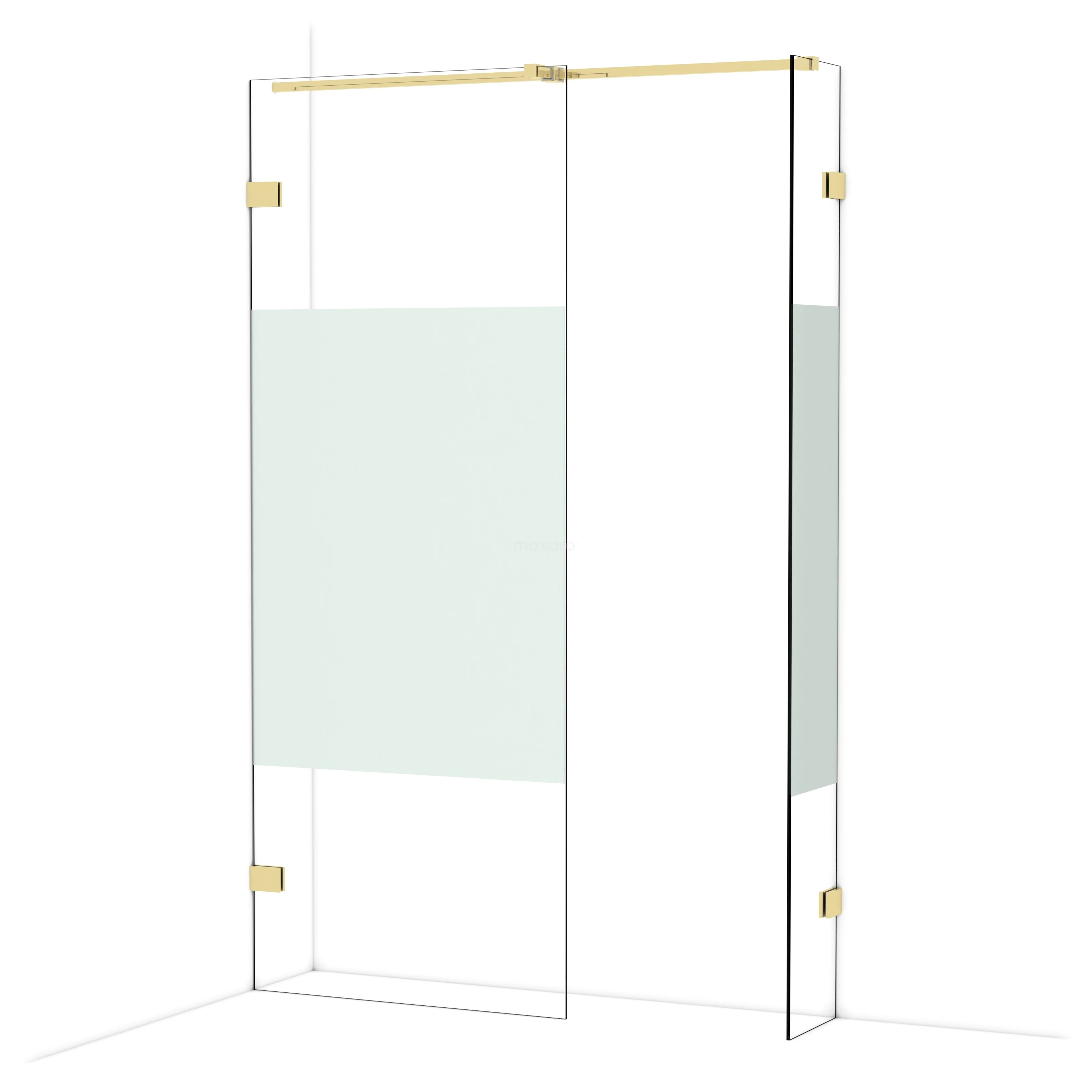 In der stilvollen begehbaren Dusche Diamond mit den Maßen 80x30 cm können Sie jeden Tag herrliche Duschsitzungen genießen. Sie hat ein raffiniertes und luxuriöses Design in glänzendem Hellgold und verfügt über Klarglas mit mattem Streifen für mehr Privatsphäre.