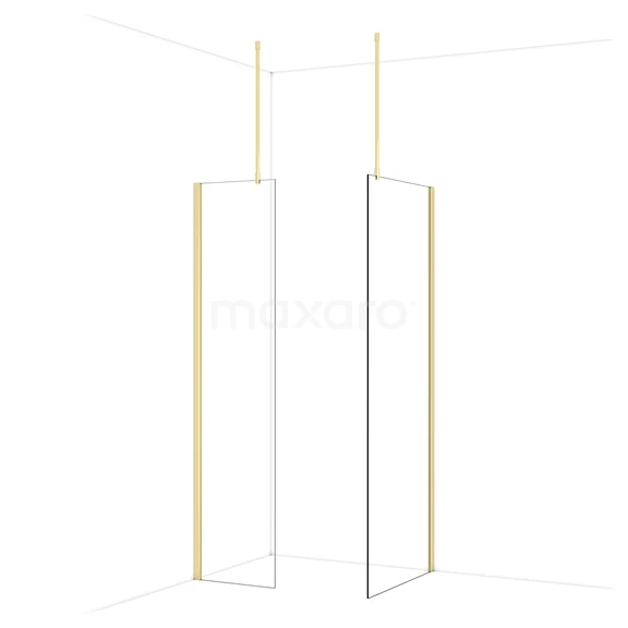 Diamond begehbare Dusche | 80x50 cm Glänzendes Hellgold 2 feste Wände