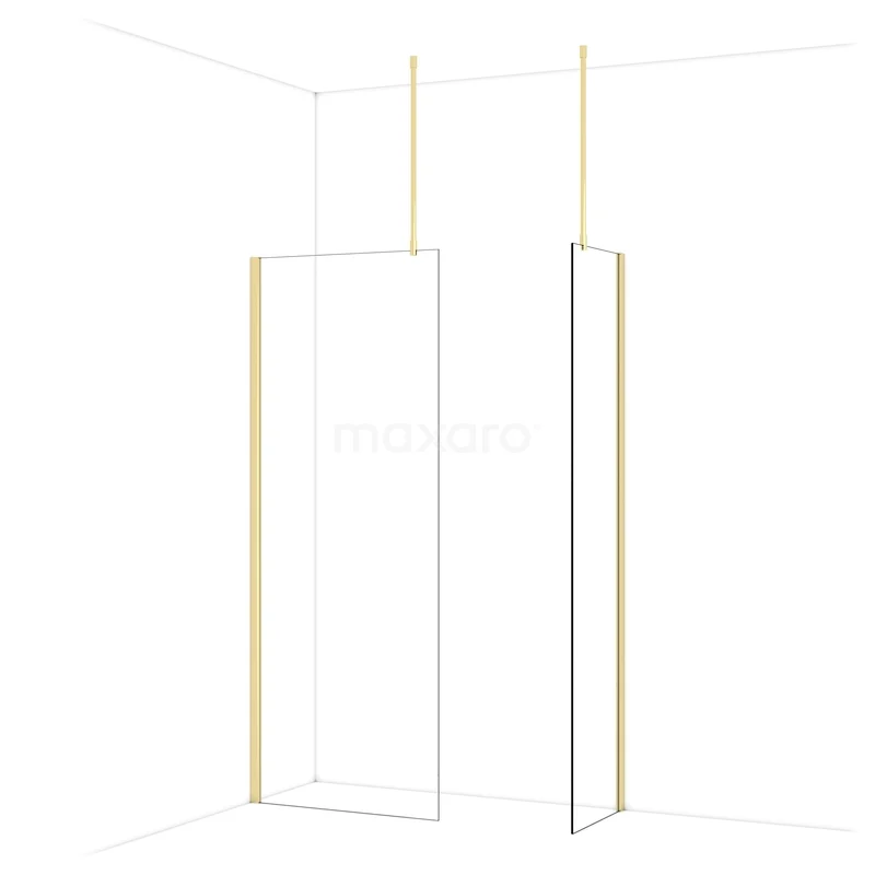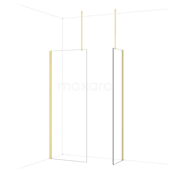 Diamond begehbare Dusche | 80x50 cm Glänzendes Hellgold 2 feste Wände