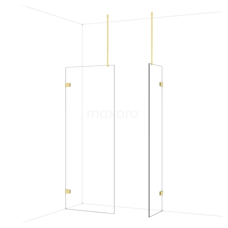 Diamond begehbare Dusche | 80x50 cm Glänzendes Hellgold 2 feste Wände