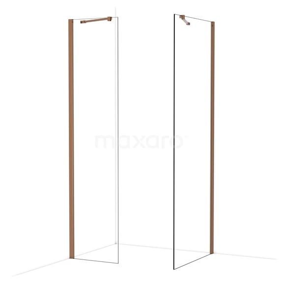 Diamond begehbare Dusche | 80x50 cm Glänzendes Kupfer 2 feste Wände