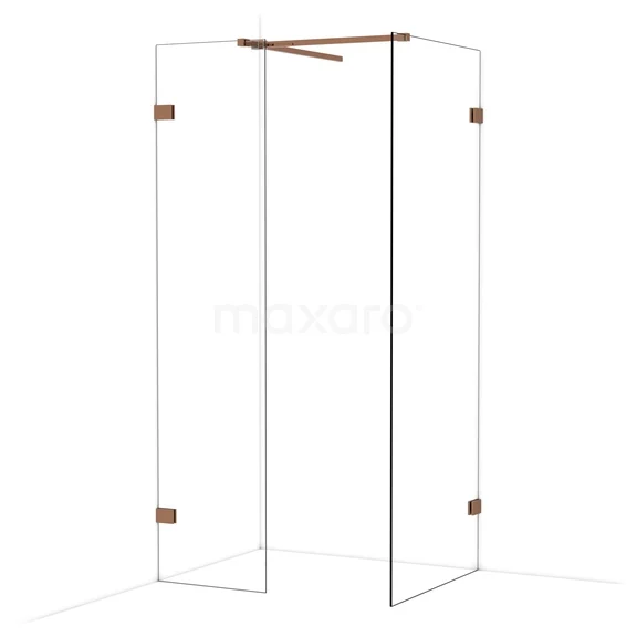 Diamond begehbare Dusche | 80x50 cm Glänzendes Kupfer 2 feste Wände