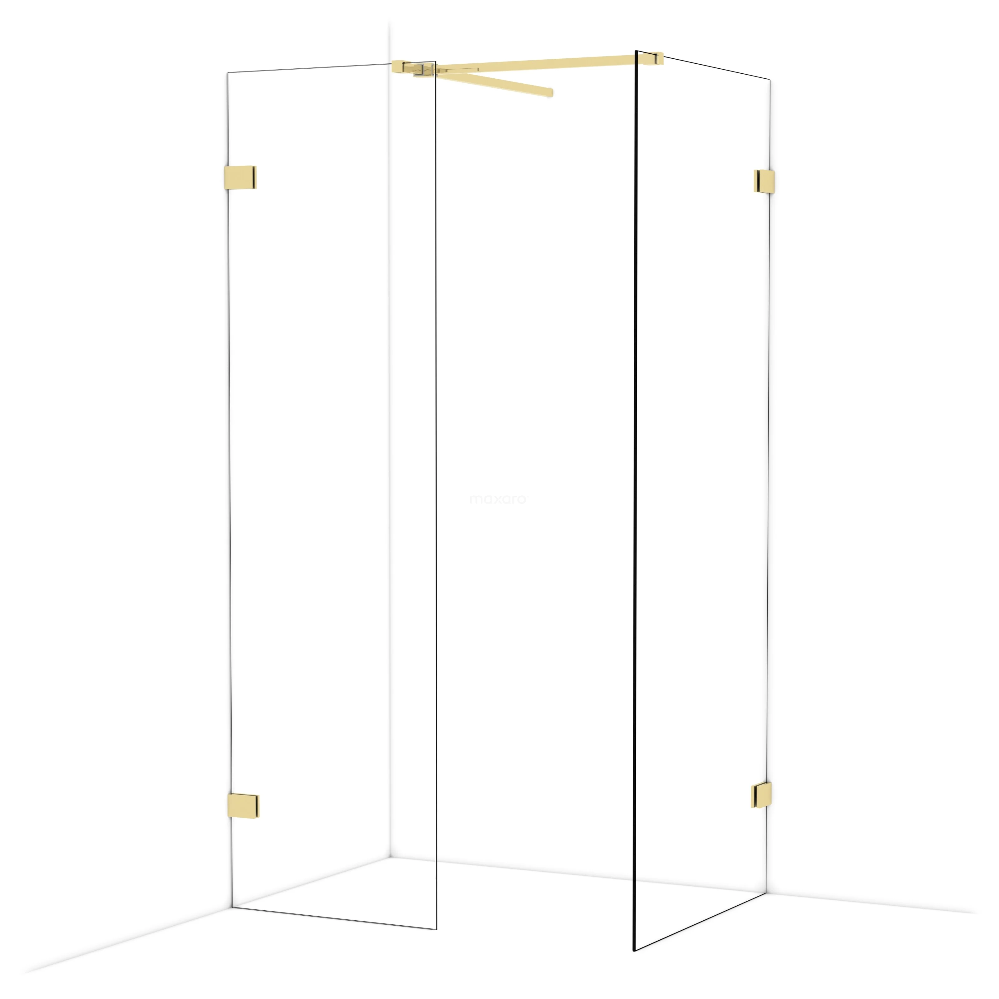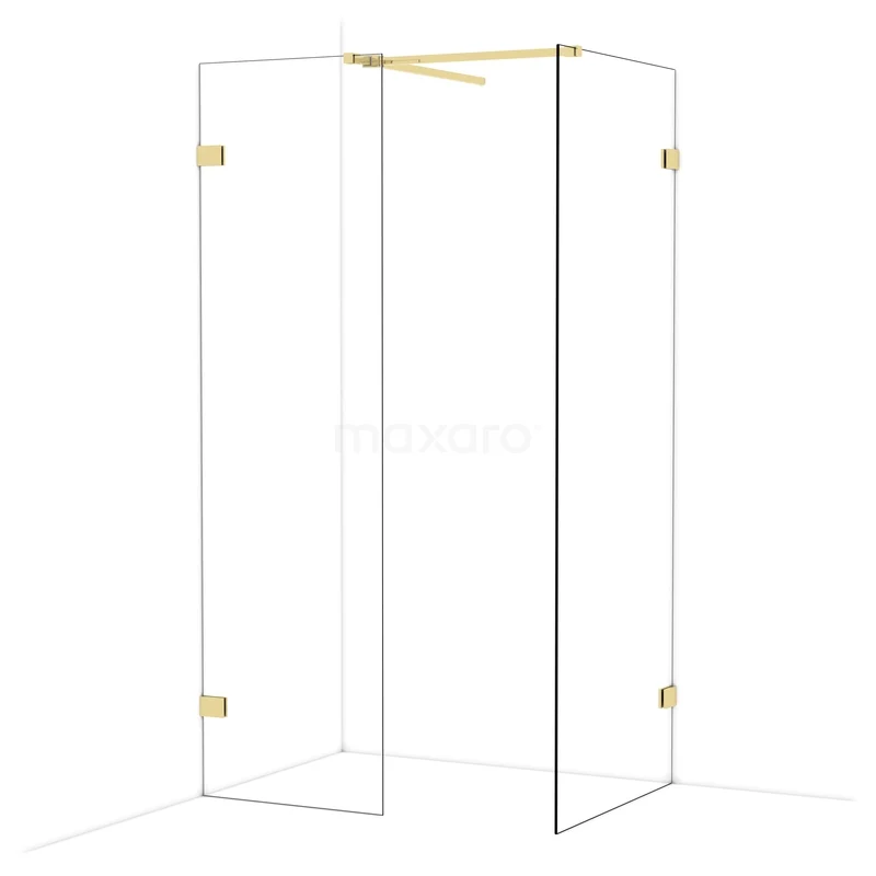 Diamond begehbare Dusche | 80x60 cm Glänzendes Hellgold 2 feste Wände