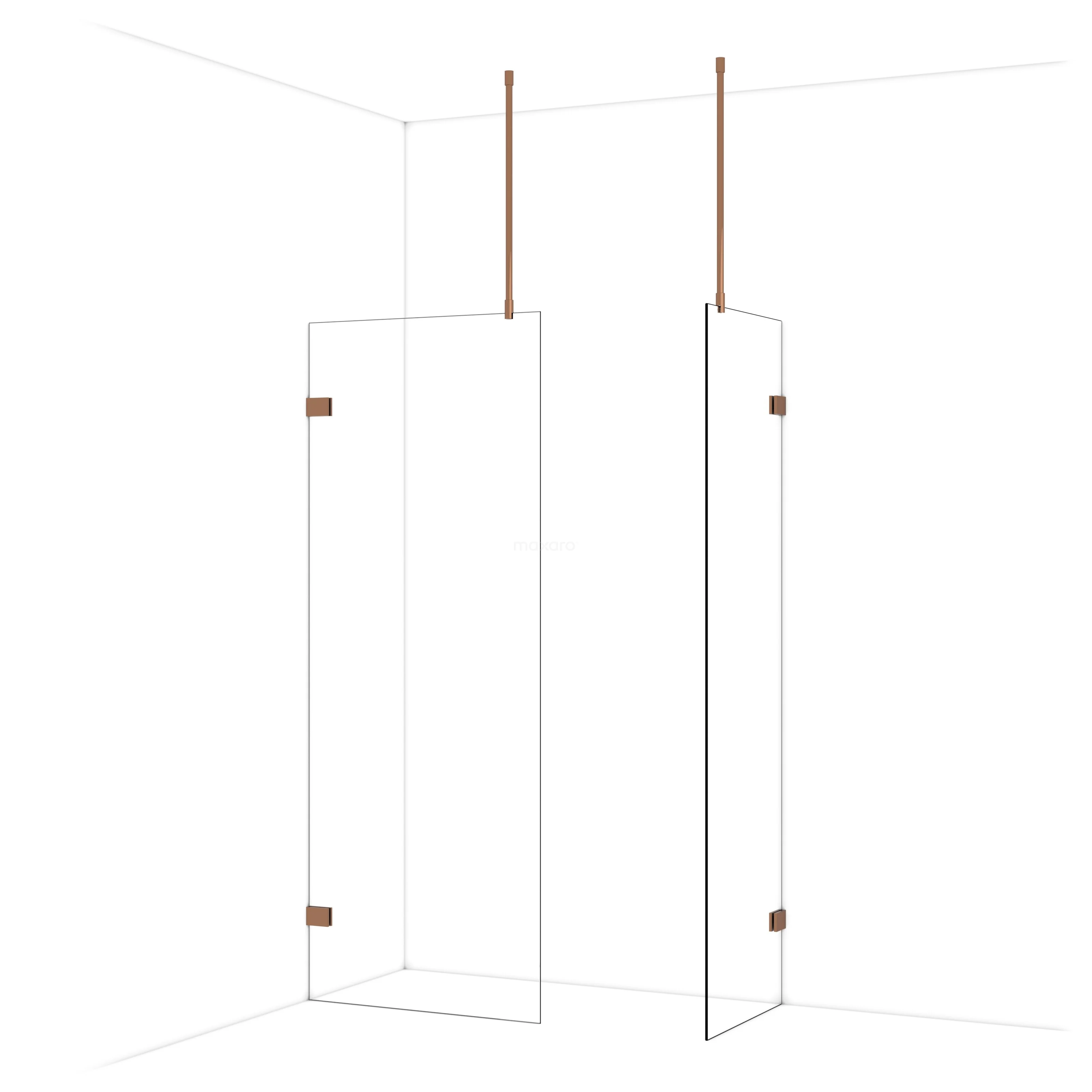 Diamond begehbare Dusche | 80x60 cm Glänzendes Kupfer 2 feste Wände