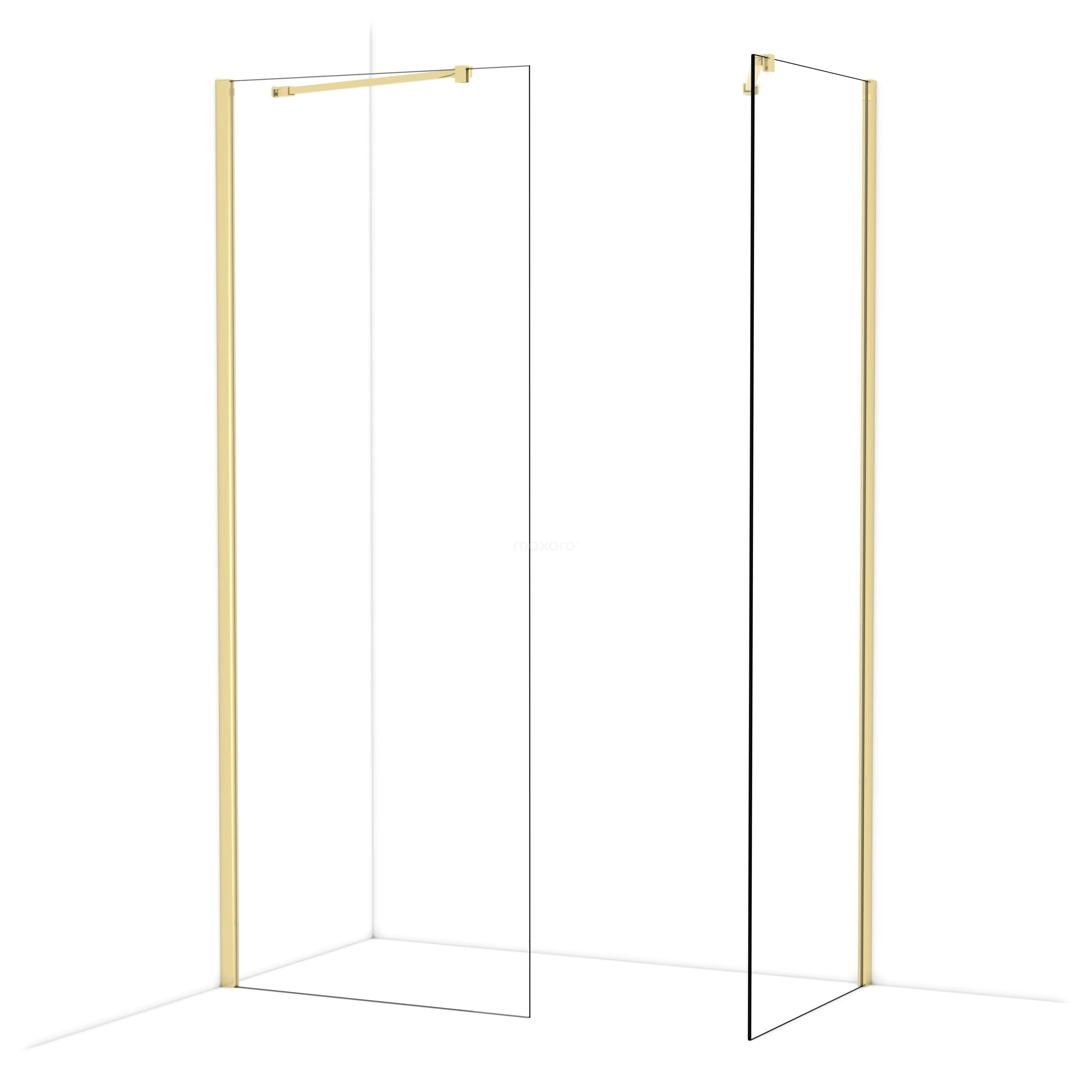 Diamond begehbare Dusche | 80x70 cm Glänzendes Hellgold 2 feste Wände