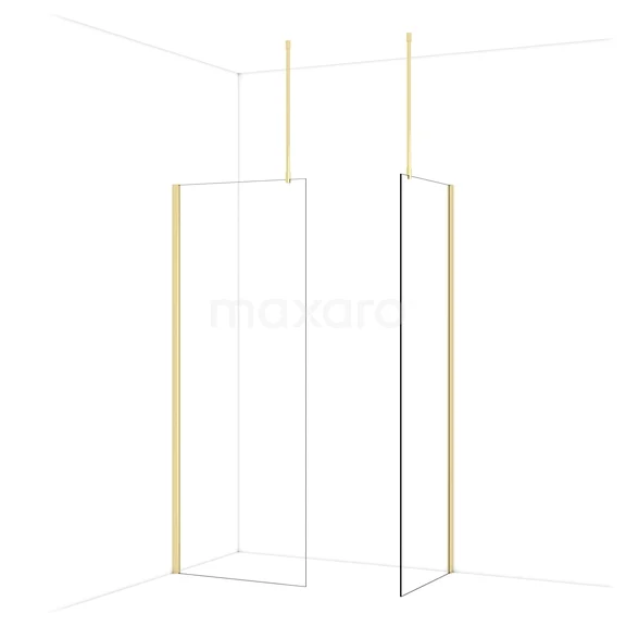 Diamond begehbare Dusche | 80x70 cm Glänzendes Hellgold 2 feste Wände