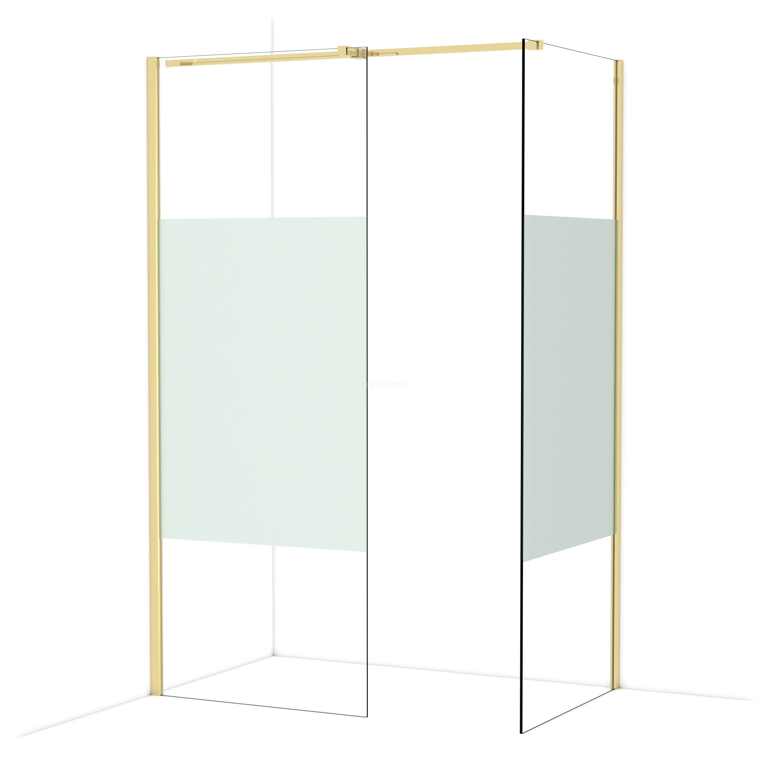 Diamond begehbare Dusche | 80x80 cm Glänzendes Hellgold 2 feste Wände