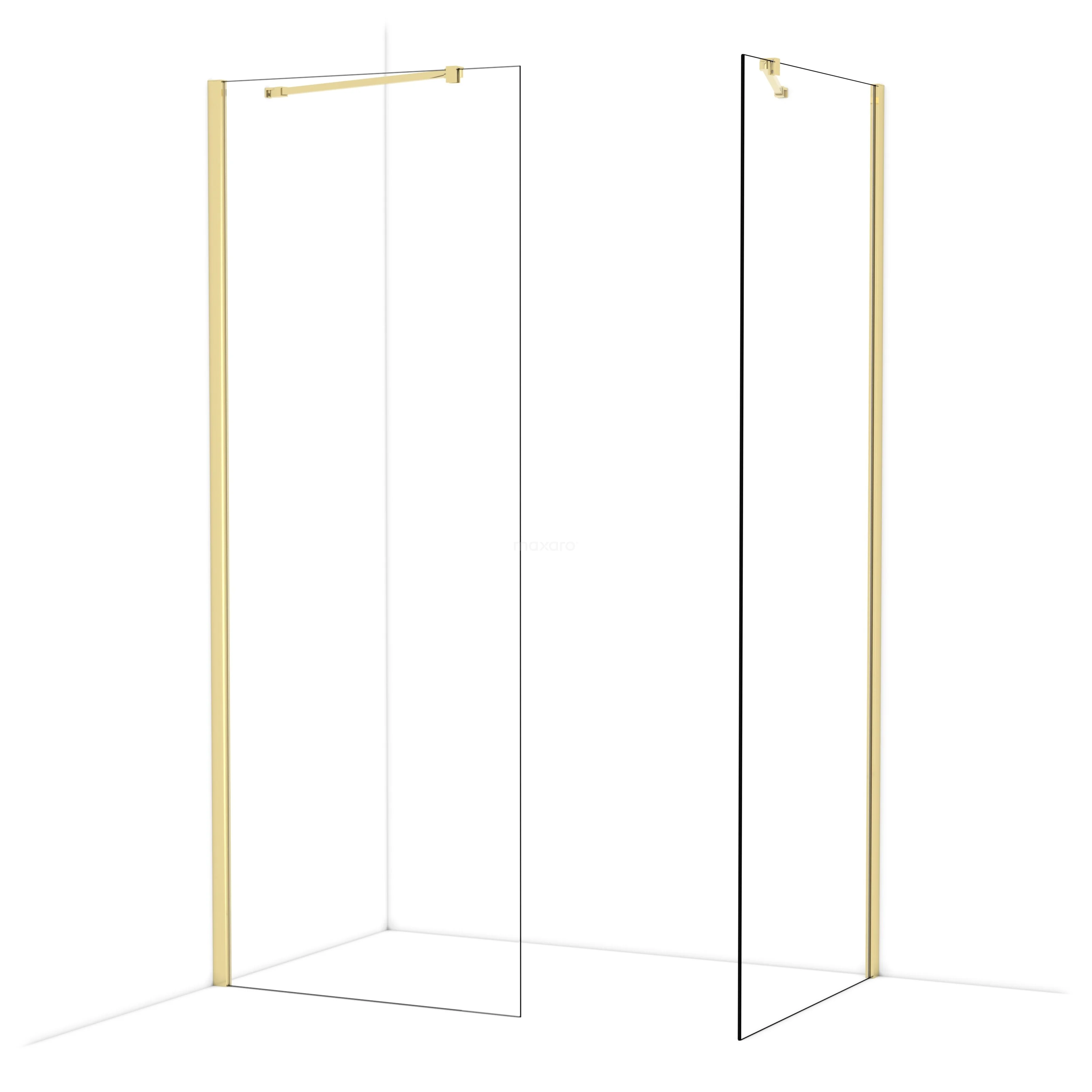 In der stilvollen begehbaren Dusche Diamond mit den Maßen 80x80 cm können Sie jeden Tag herrliche Duschsitzungen genießen. Sie hat ein raffiniertes und luxuriöses Design in glänzendem Hellgold und verfügt über Klarglas für ein großzügiges Raumgefühl.