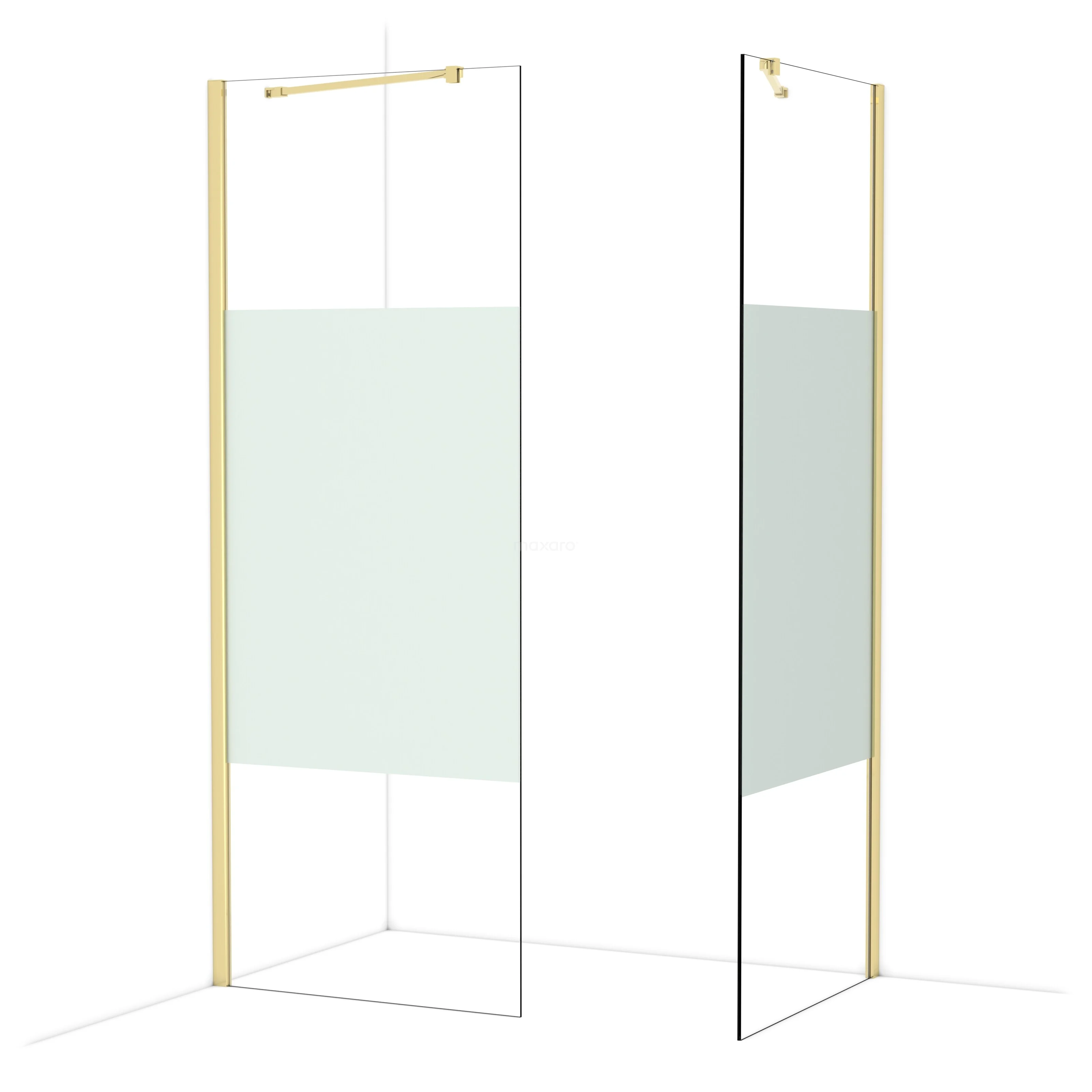 Diamond begehbare Dusche | 80x80 cm Glänzendes Hellgold 2 feste Wände