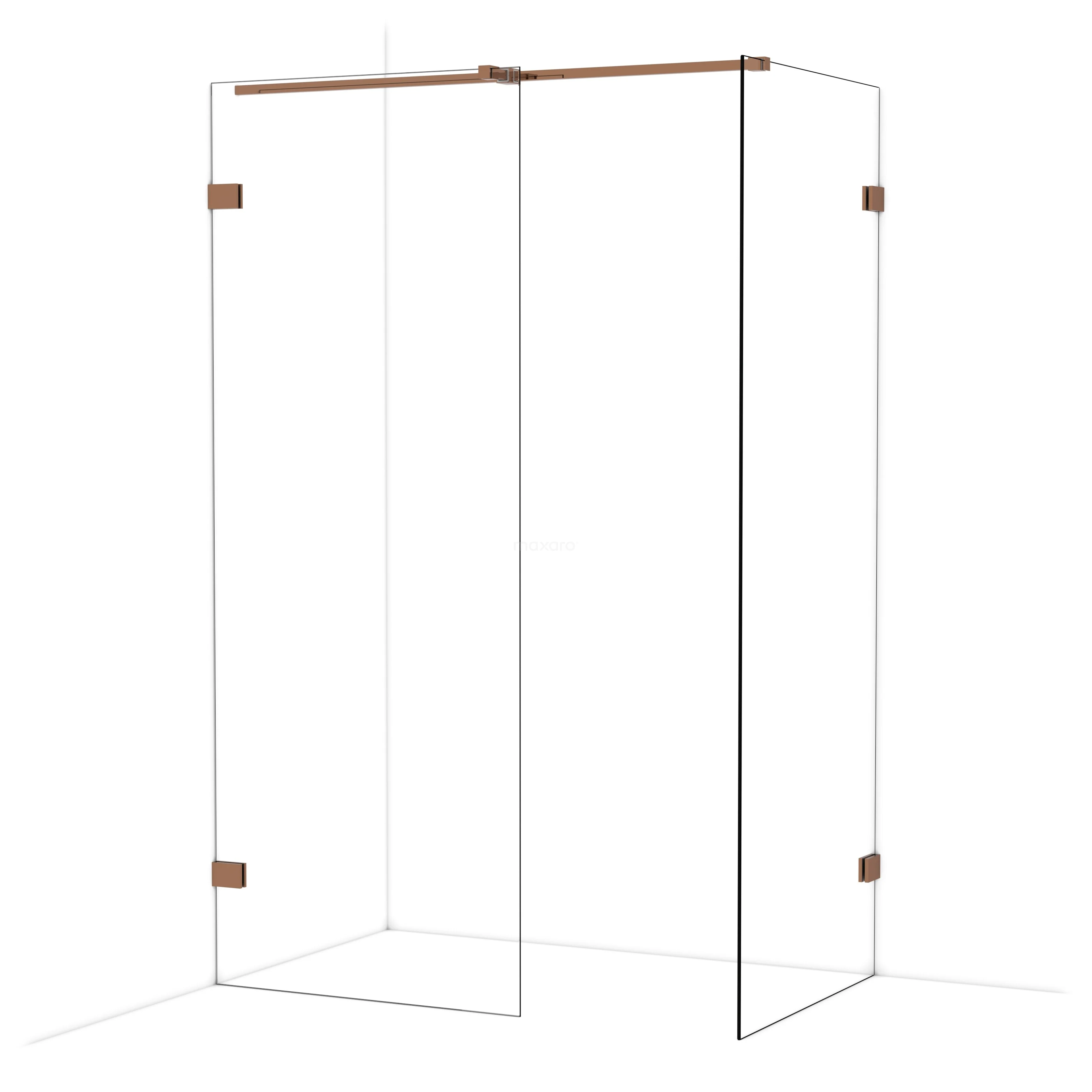 Diamond begehbare Dusche | 80x80 cm Glänzendes Kupfer 2 feste Wände