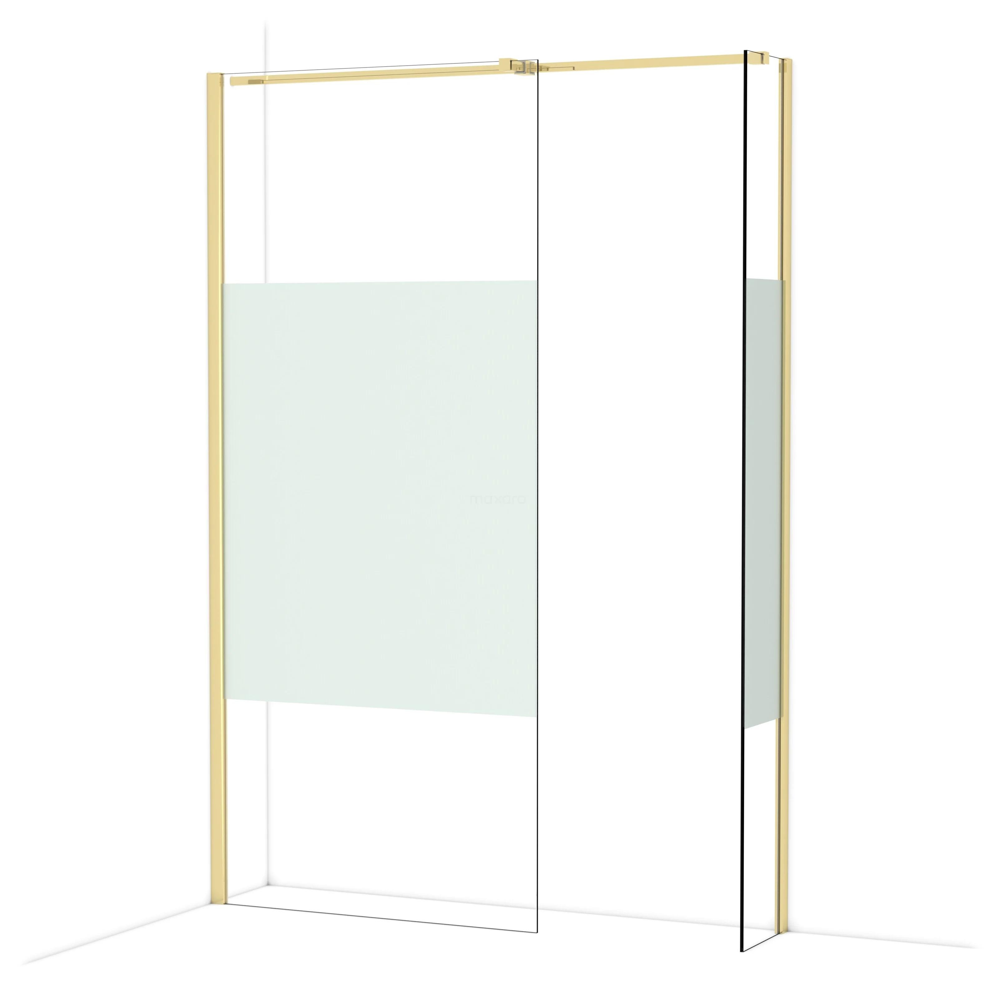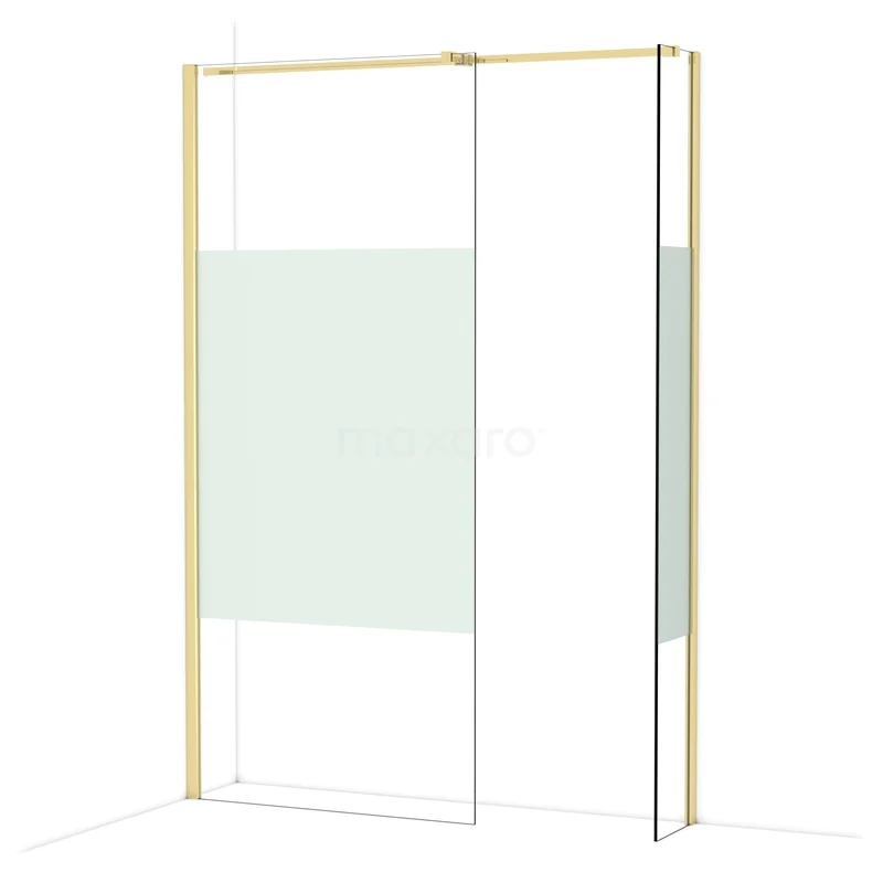 In der stilvollen begehbaren Dusche Diamond mit den Maßen 90x30 cm können Sie jeden Tag herrliche Duschsitzungen genießen. Sie hat ein raffiniertes und luxuriöses Design in glänzendem Hellgold und verfügt über Klarglas mit mattem Streifen für mehr Privatsphäre.