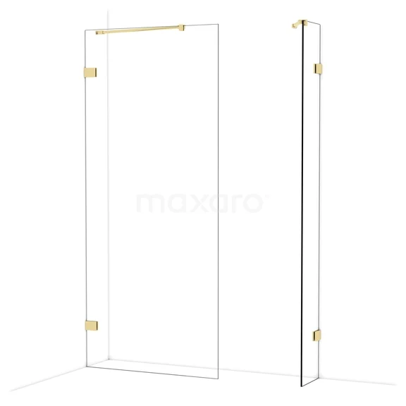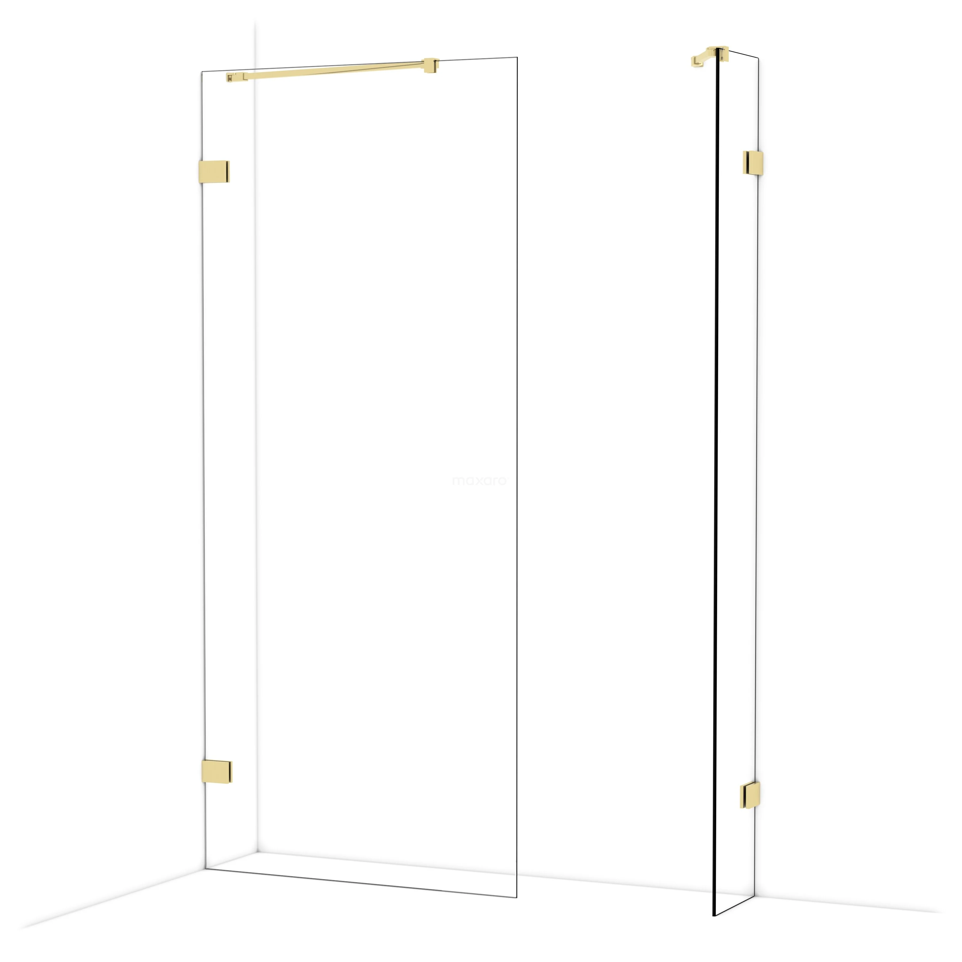 Diamond begehbare Dusche | 90x30 cm Glänzendes Hellgold 2 feste Wände