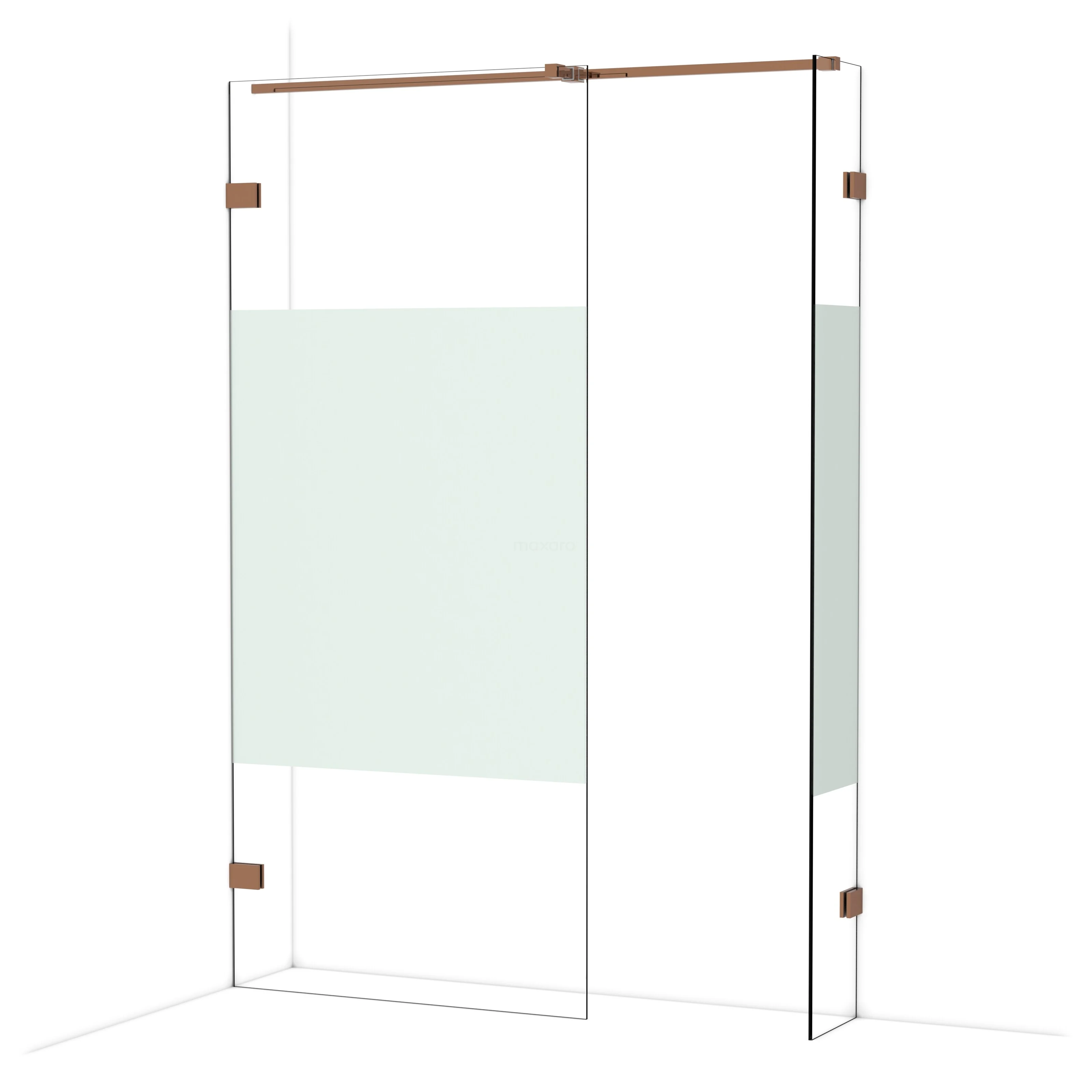 Diamond begehbare Dusche | 90x30 cm Glänzendes Kupfer 2 feste Wände