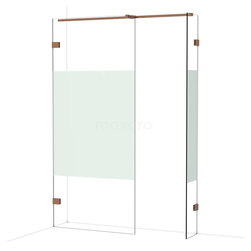In der stilvollen begehbaren Dusche Diamond mit den Maßen 90x30 cm können Sie jeden Tag herrliche Duschsitzungen genießen. Sie hat ein auffälliges Design aus glänzendem Kupfer und verfügt über Klarglas mit mattem Streifen für mehr Privatsphäre.