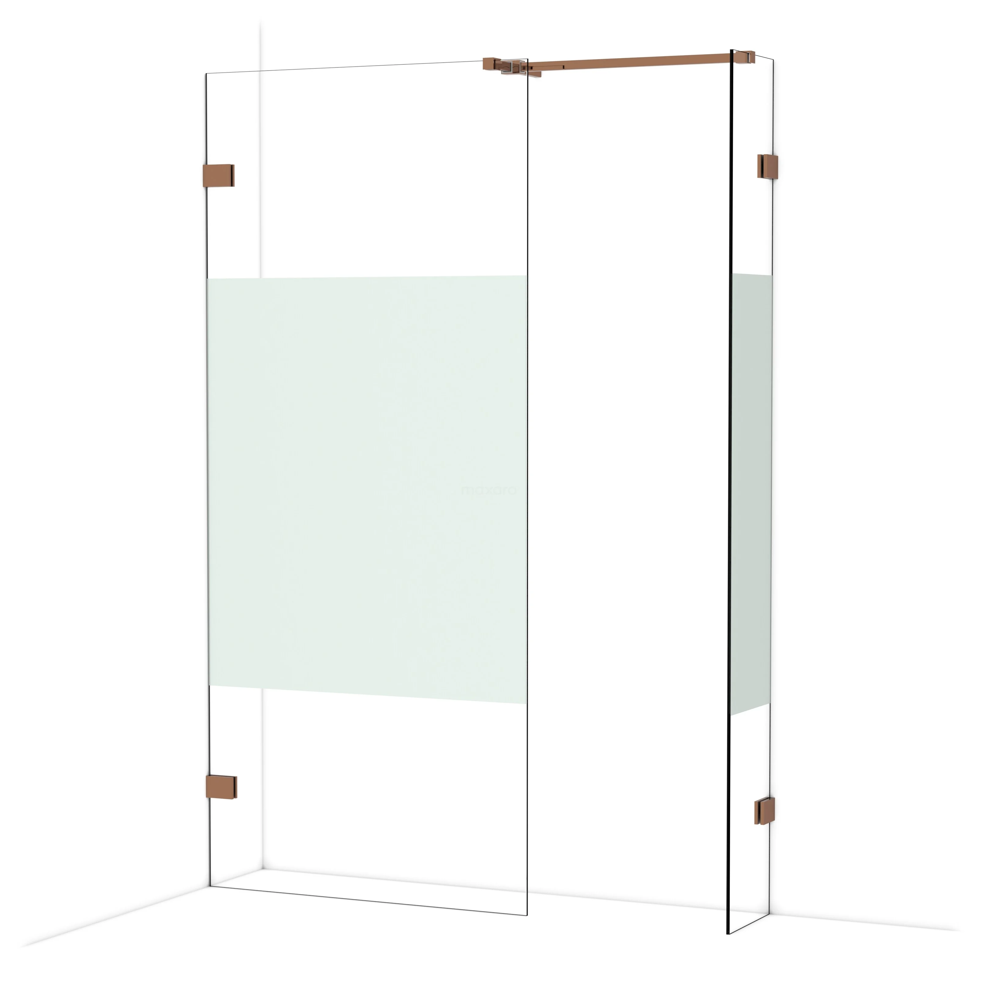 In der stilvollen begehbaren Dusche Diamond mit den Maßen 90x30 cm können Sie jeden Tag herrliche Duschsitzungen genießen. Sie hat ein auffälliges Design aus glänzendem Kupfer und verfügt über Klarglas mit mattem Streifen für mehr Privatsphäre.