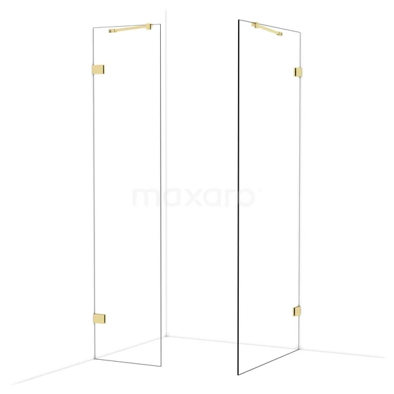 Diamond begehbare Dusche | 90x50 cm Glänzendes Hellgold 2 feste Wände