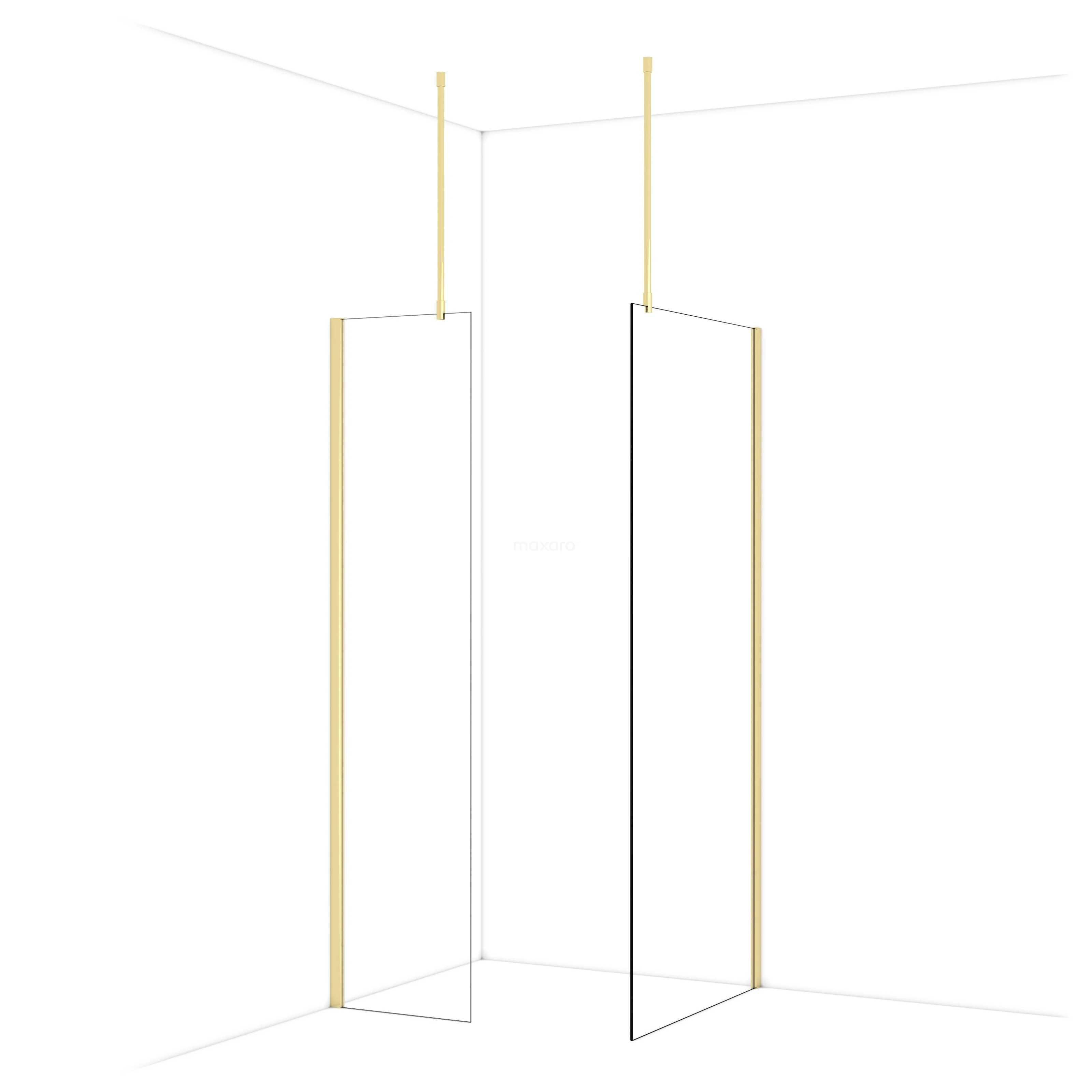 Diamond begehbare Dusche | 90x50 cm Glänzendes Hellgold 2 feste Wände