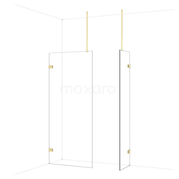 Diamond begehbare Dusche | 90x50 cm Glänzendes Hellgold 2 feste Wände