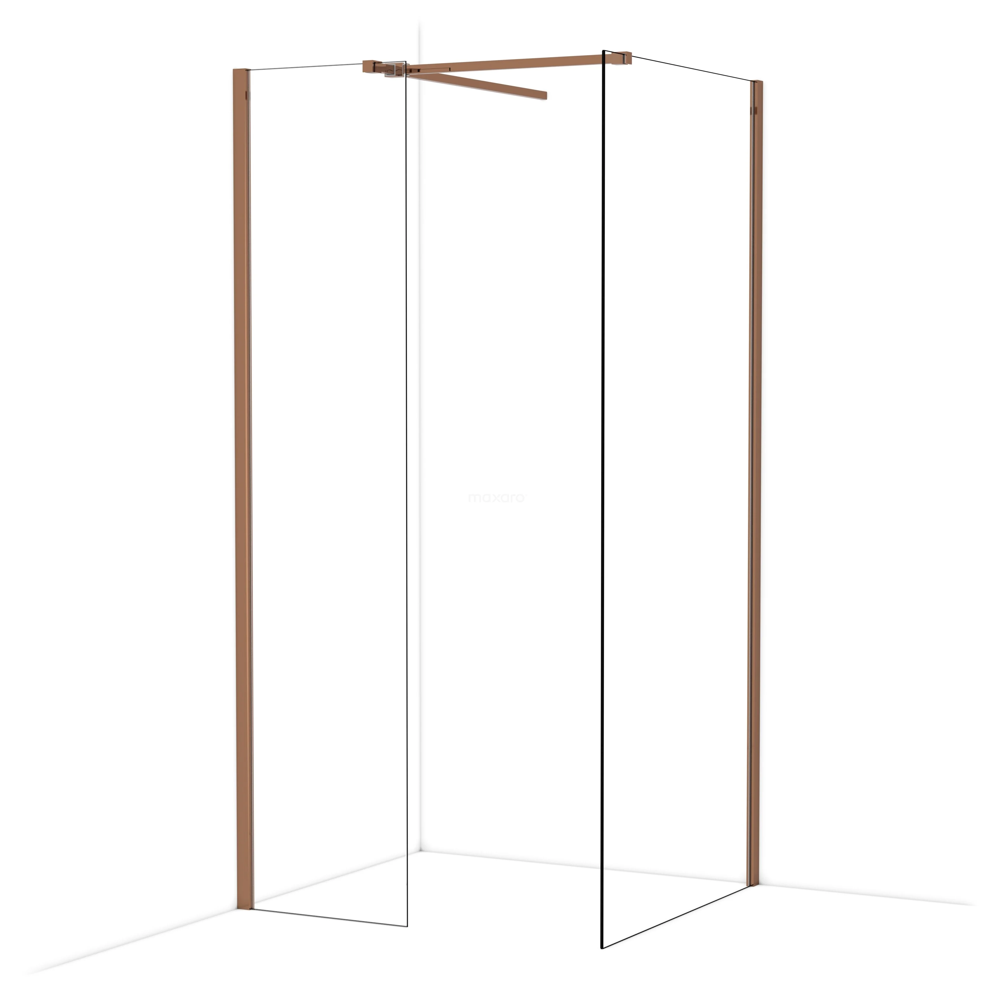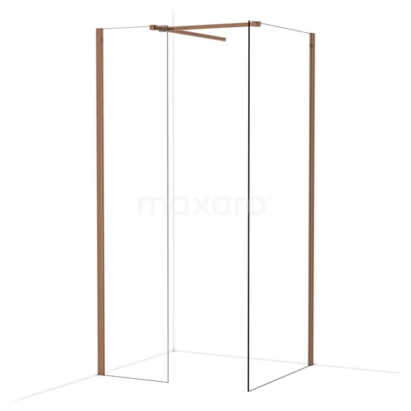 Diamond begehbare Dusche | 90x50 cm Glänzendes Kupfer 2 feste Wände