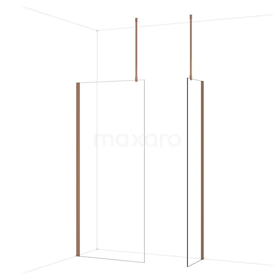 Diamond begehbare Dusche | 90x50 cm Glänzendes Kupfer 2 feste Wände