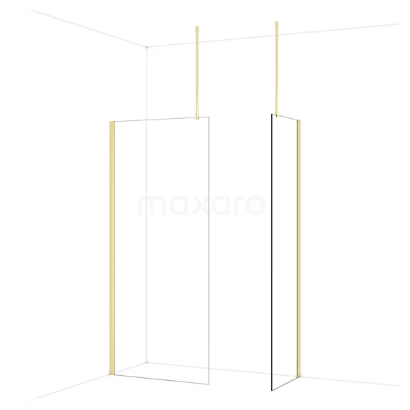 Diamond begehbare Dusche | 90x60 cm Glänzendes Hellgold 2 feste Wände