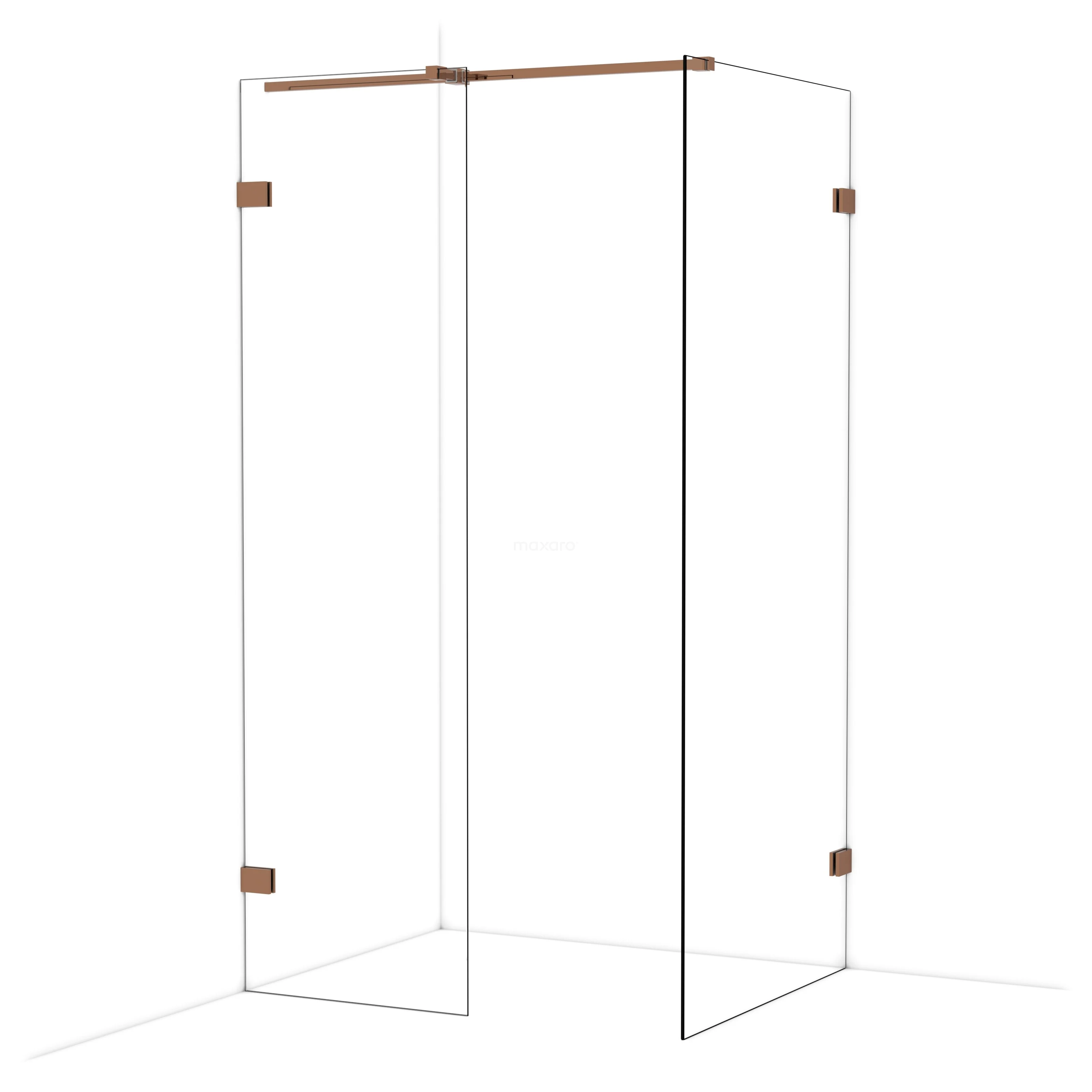 Diamond begehbare Dusche | 90x60 cm Glänzendes Kupfer 2 feste Wände