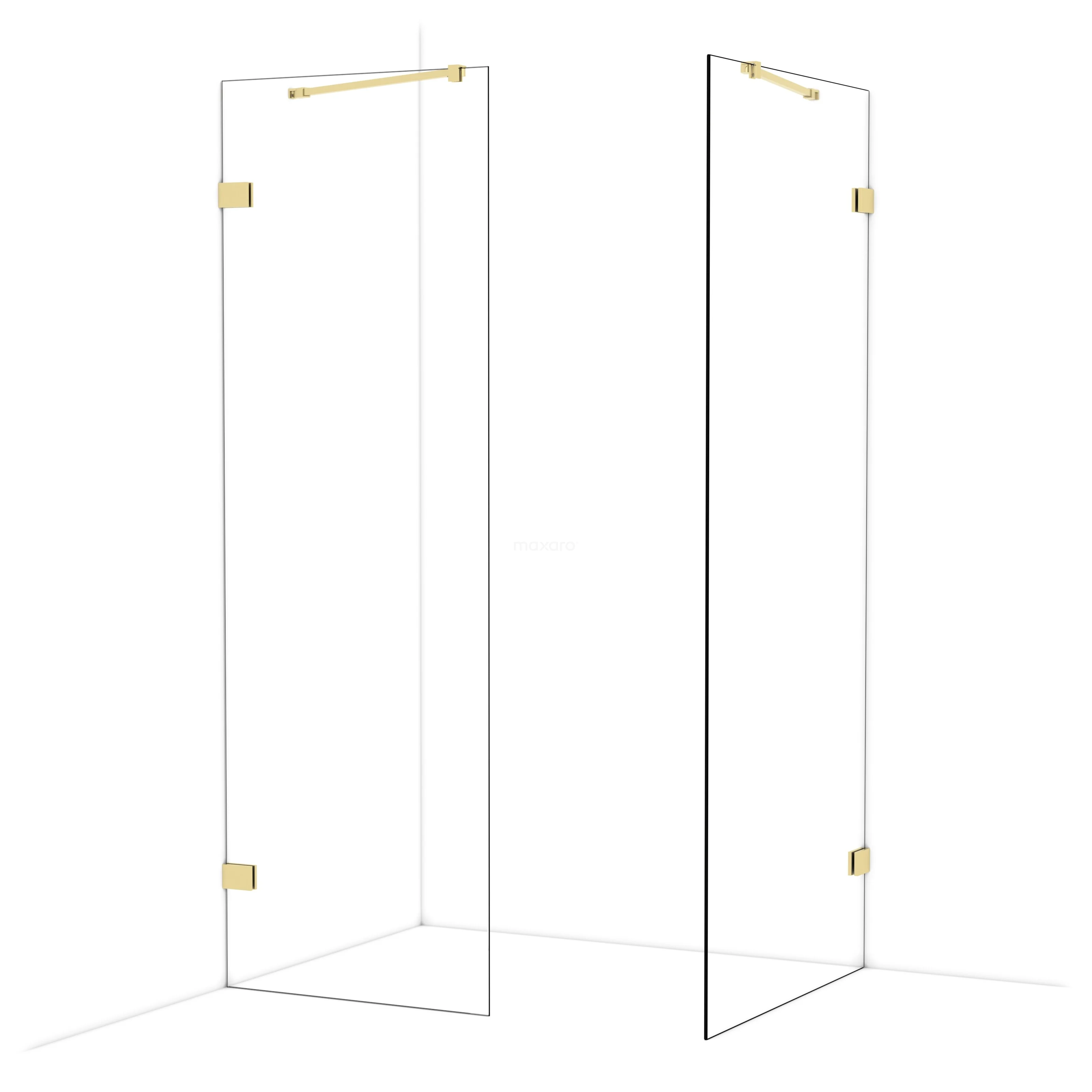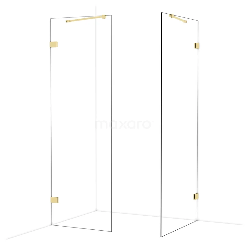 Diamond begehbare Dusche | 90x70 cm Glänzendes Hellgold 2 feste Wände