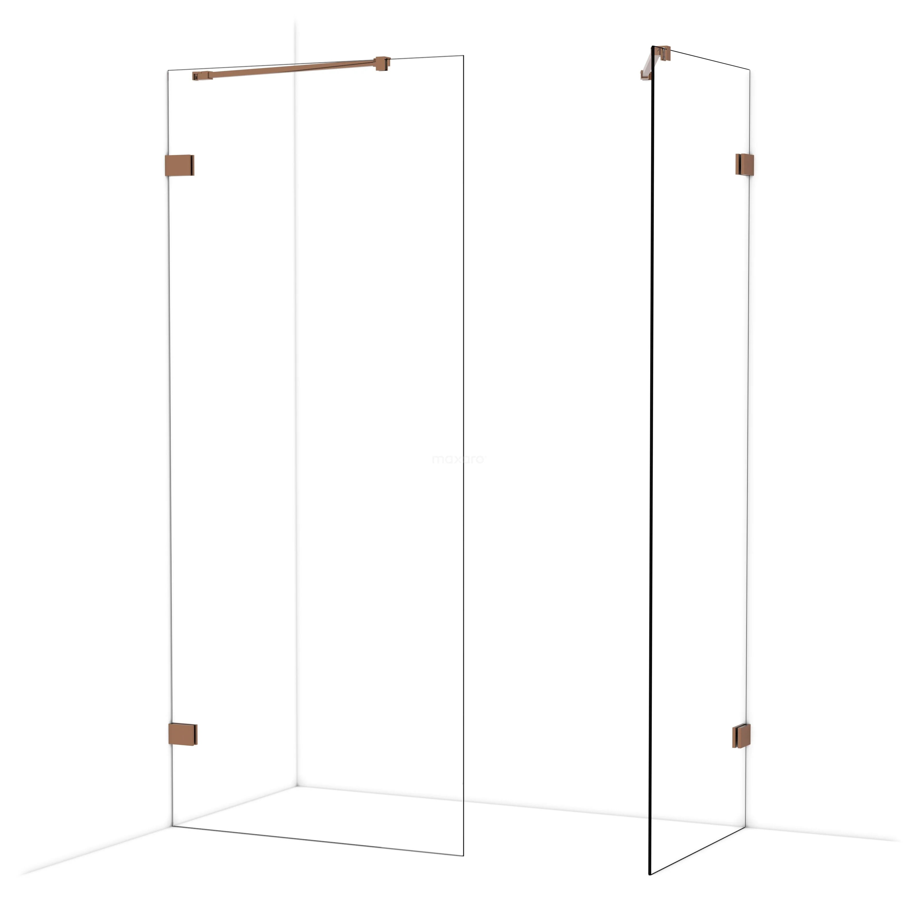 Diamond begehbare Dusche | 90x70 cm Glänzendes Kupfer 2 feste Wände