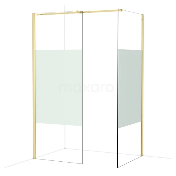 In der stilvollen begehbaren Dusche Diamond mit den Maßen 90x80 cm können Sie jeden Tag herrliche Duschsitzungen genießen. Sie hat ein raffiniertes und luxuriöses Design in glänzendem Hellgold und verfügt über Klarglas mit mattem Streifen für mehr Privatsphäre.