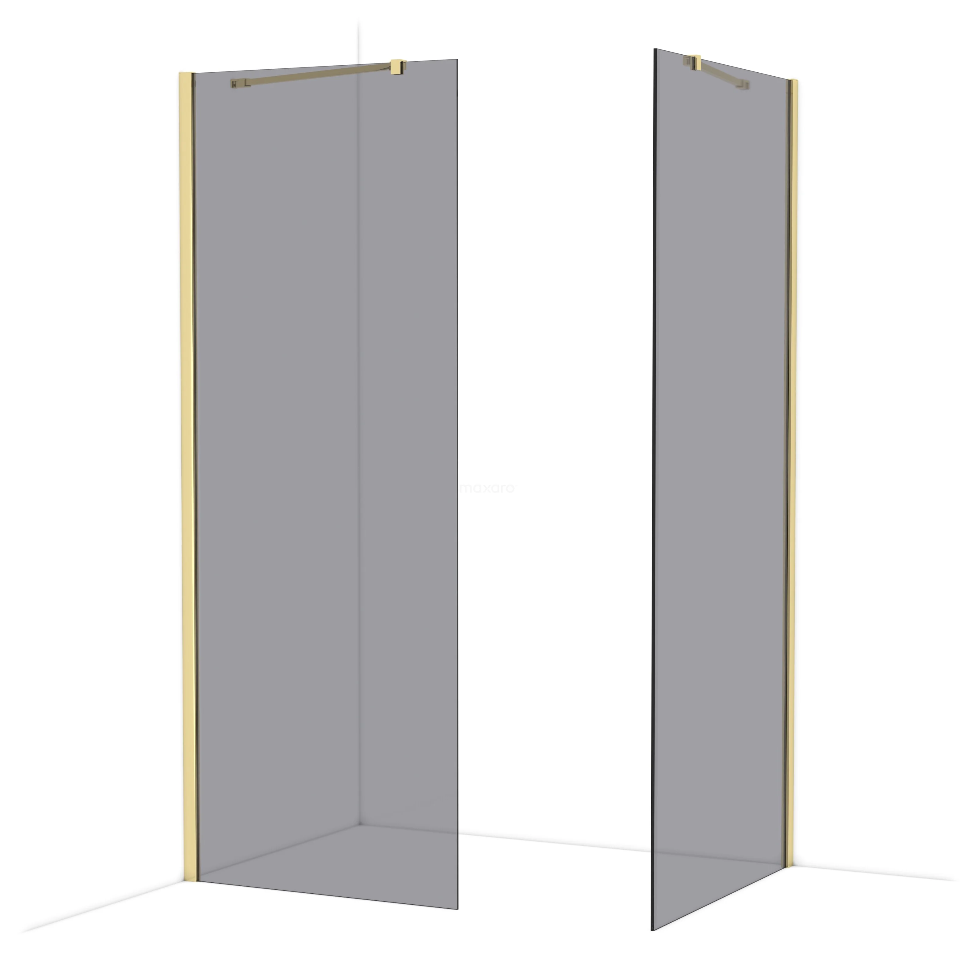In der stilvollen begehbaren Dusche Diamond mit den Maßen 90x80 cm können Sie jeden Tag herrliche Duschsitzungen genießen. Sie hat ein raffiniertes und luxuriöses Design in glänzendem Hellgold und ist mit Rauchglas ausgestattet, das für eine schicke Optik sorgt.