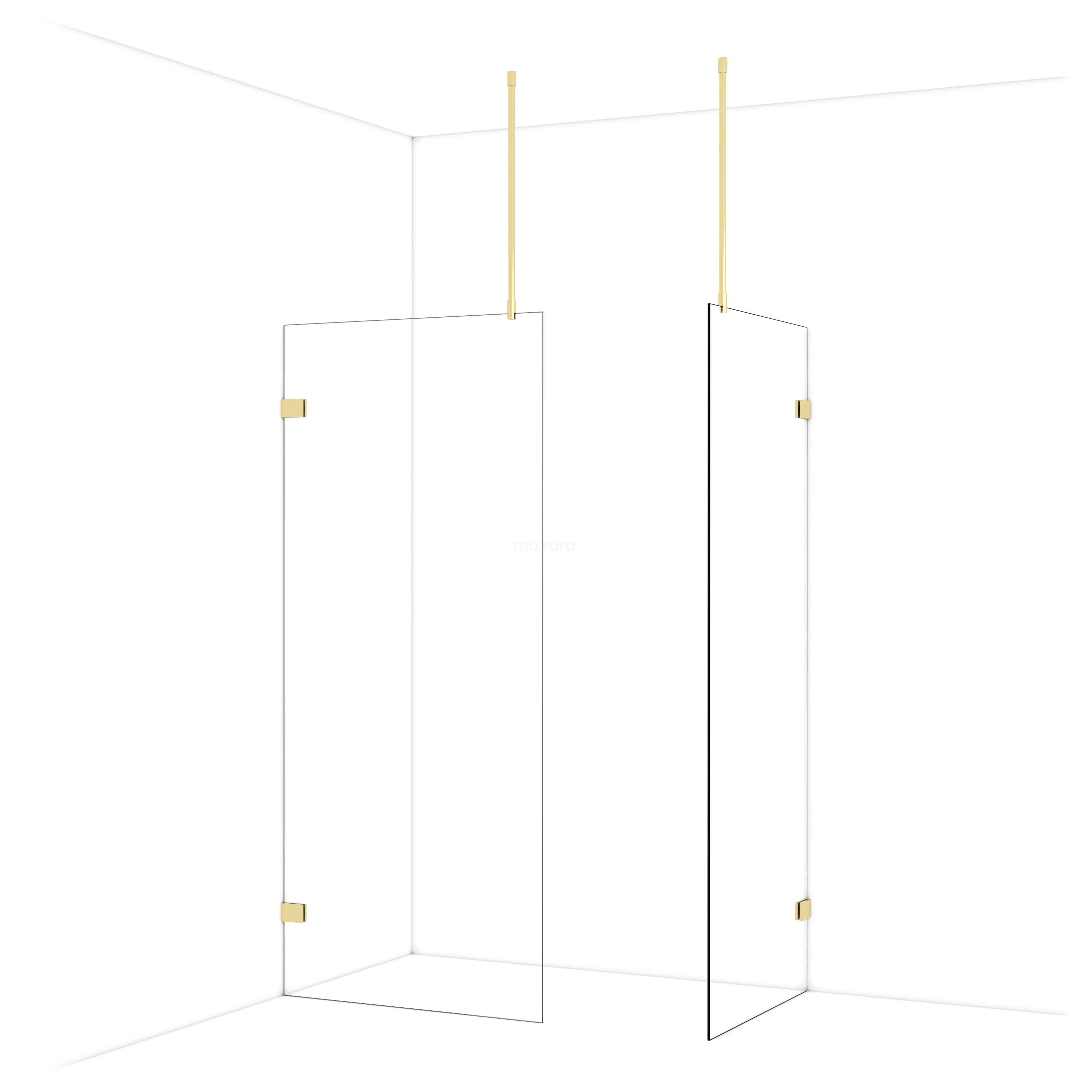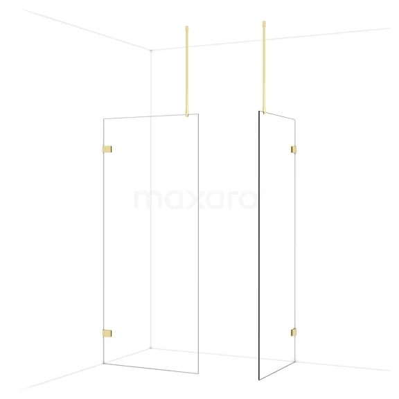 Diamond begehbare Dusche | 90x80 cm Glänzendes Hellgold 2 feste Wände